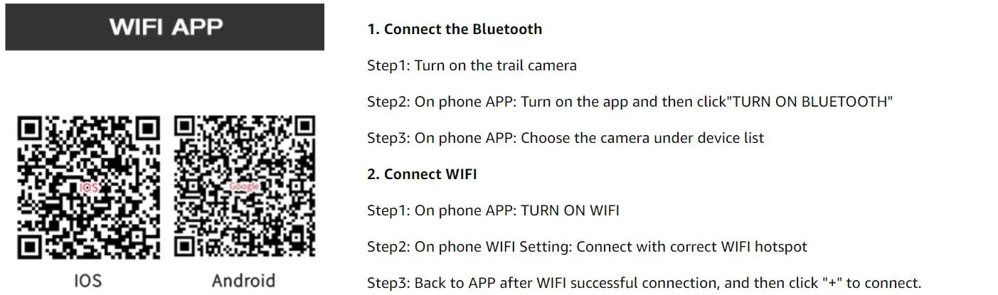 This solar panel trail camera has a wifi Bluetooth function, which allows to preview and download pictures & videos on APP (Hunting Camera 4K) on the smartphone. You will have easier access to your recordings. You can also change settings for the trail camera according to your needs on the app. (Tips: The wifi is not home wifi, it is the camera itself that has wifi. The wifi of the trail camera has a distance limit.)
