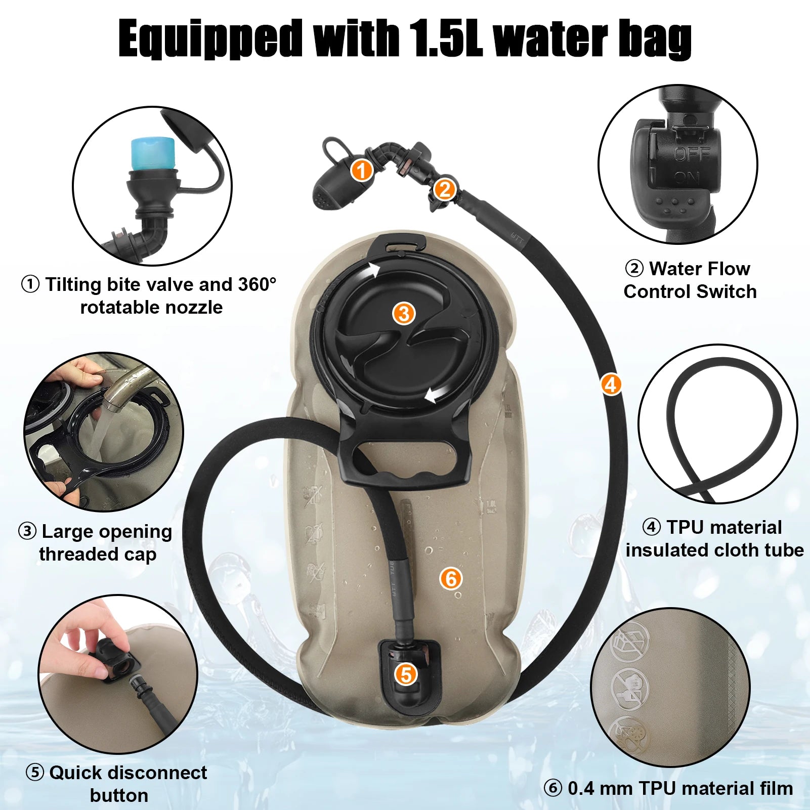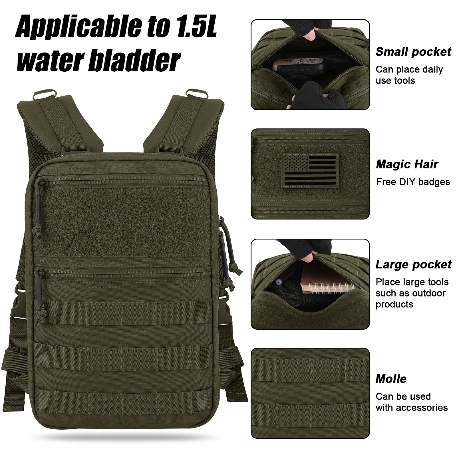 KRYDEX Tactical 50 oz Hydration Carrier MOLLE Pack, 1.5L Water Bladder Pouch, Hunting Backpack Bag Outdoor Vest Accessories