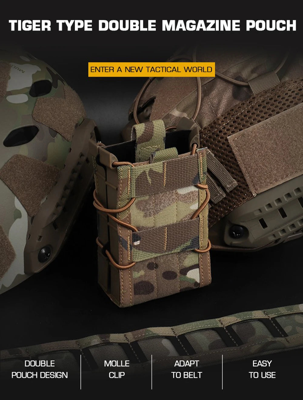 Tactical 5.56/7.62 Double Magazine Pouch Tiger Type Full Size Hunting Shooting Rifle M4 AK AR15 MAG Holder Bag MOLLE Belt Gear