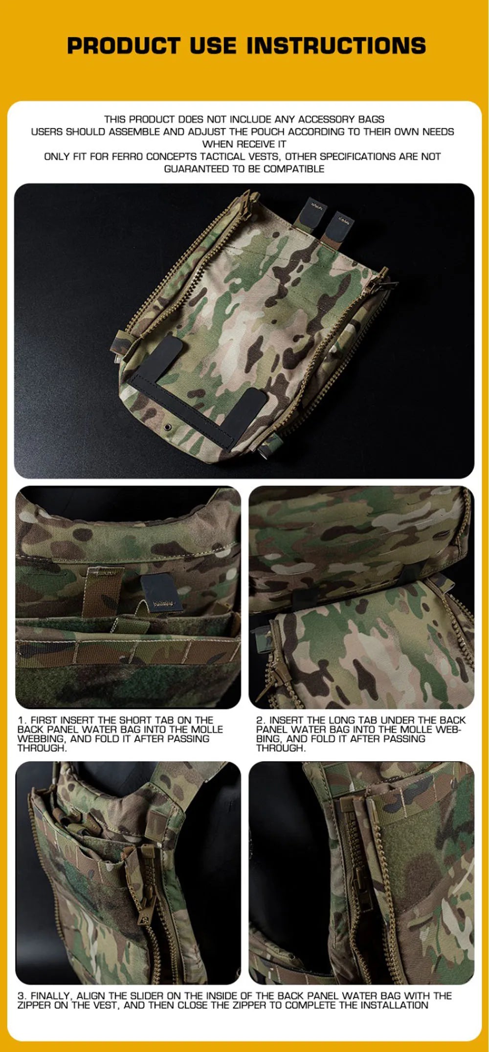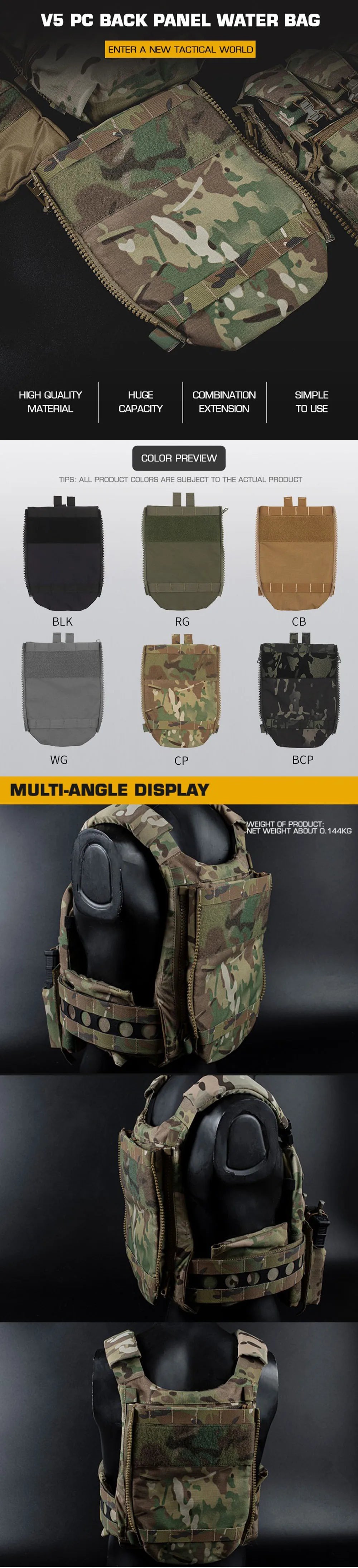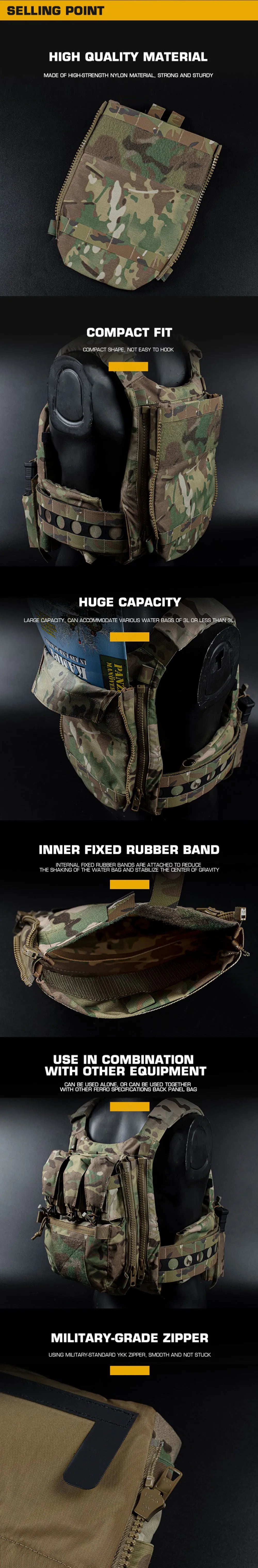 Tactical Water Bag Back Panel MOLLE System Side Zip Vest Back Panel Water Hydration Bladder Reservoir For FCPC V5 Hunting Vest