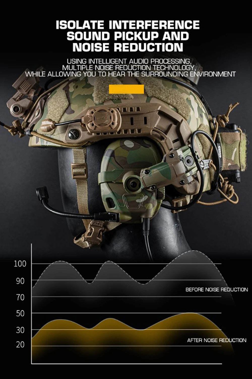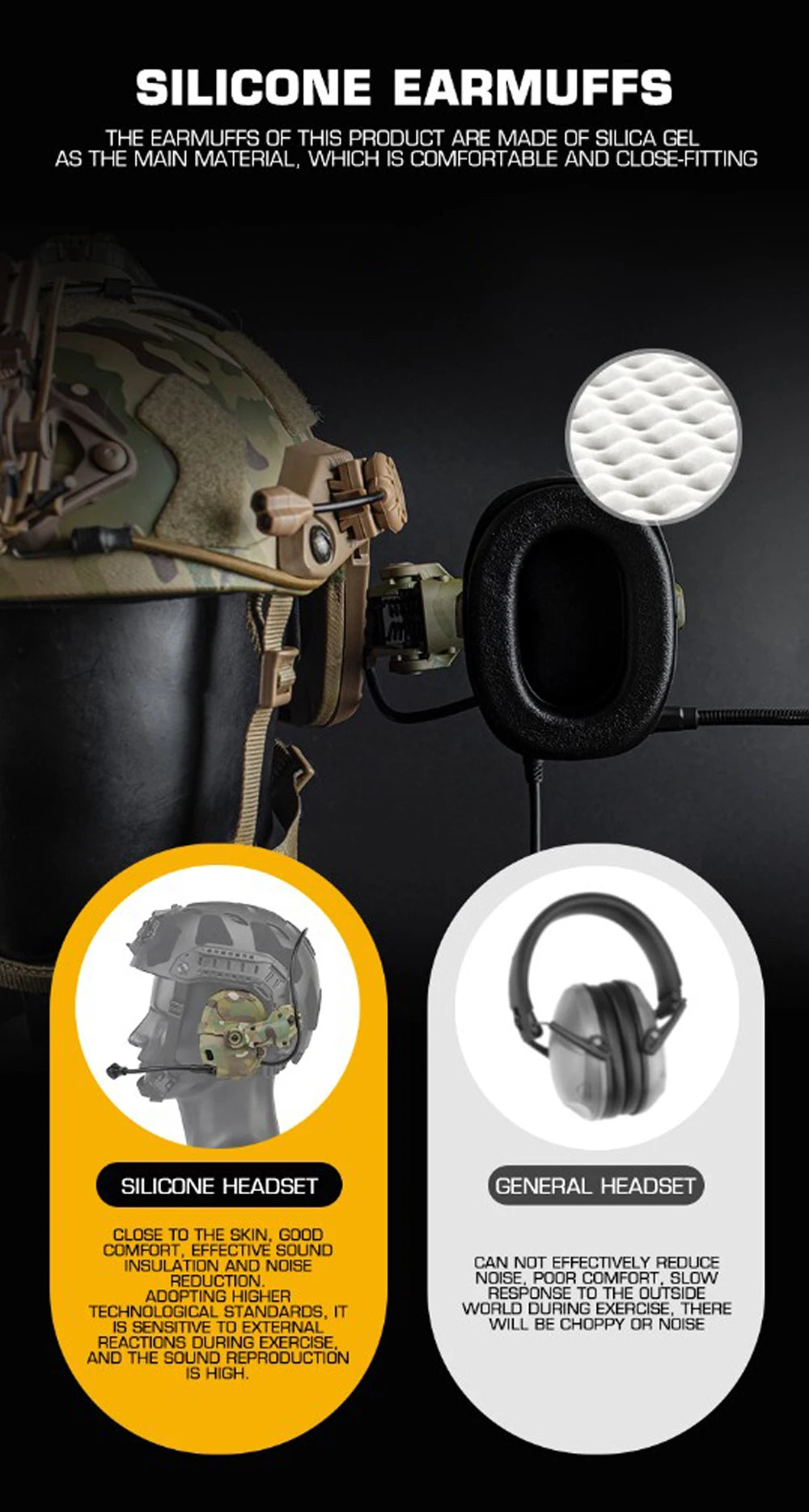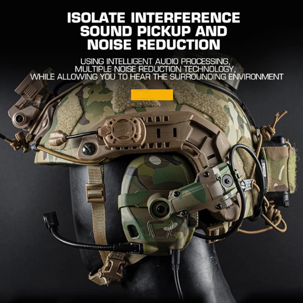 Tactical Noise Reduction Headset With Helmet Rail Mount Holder Outdoor Hunting Sport Communication Headset Shooting Airsoft Gear