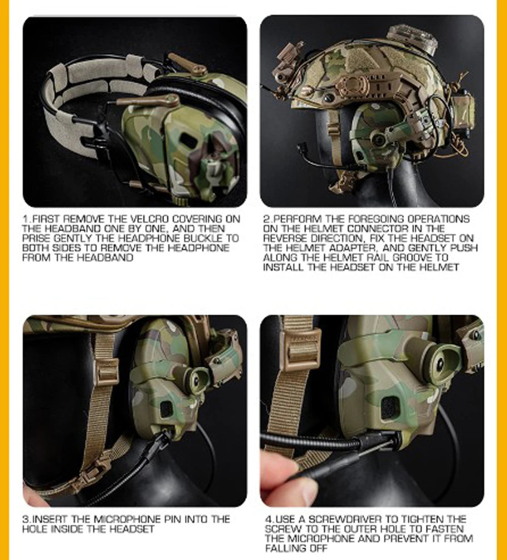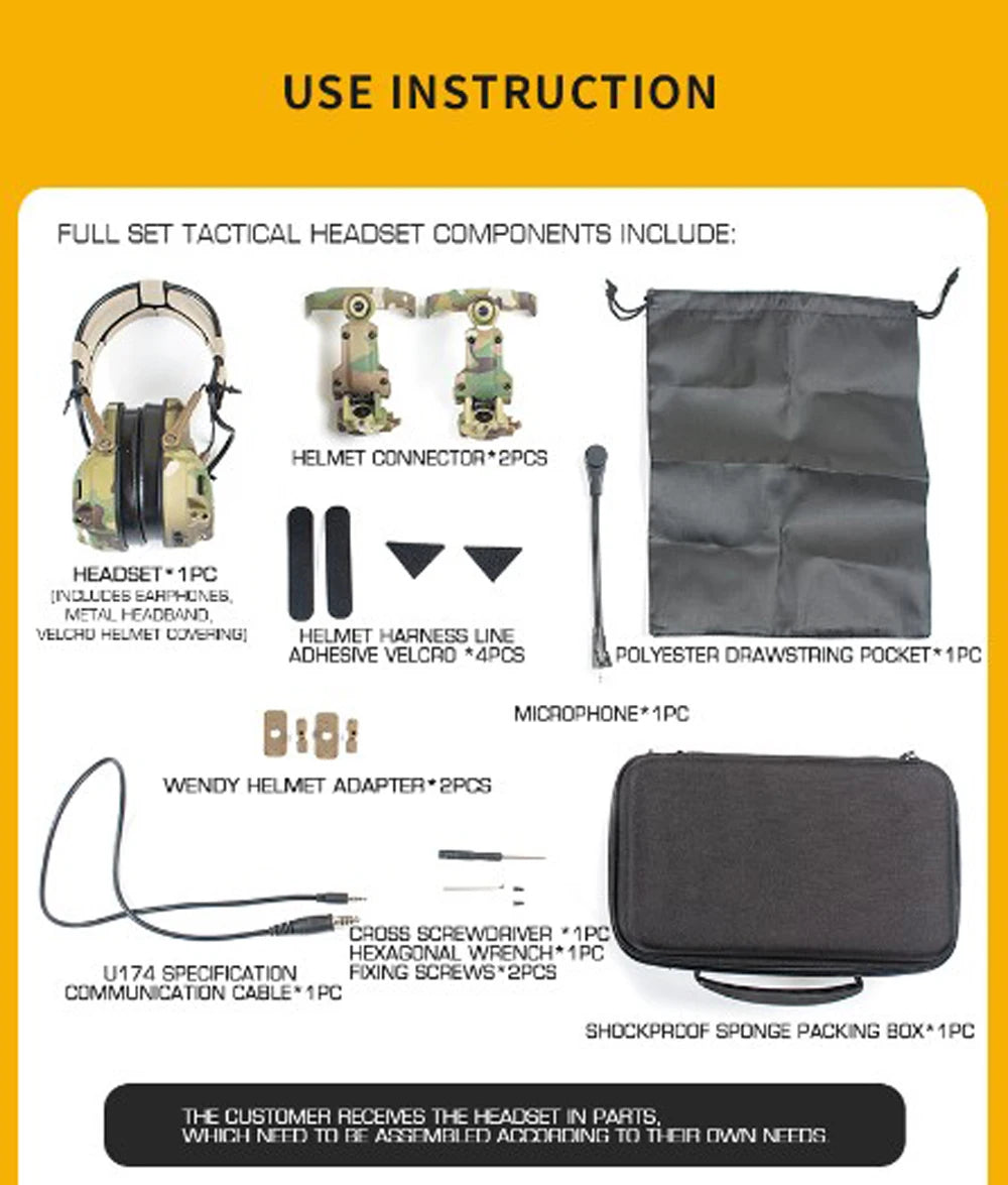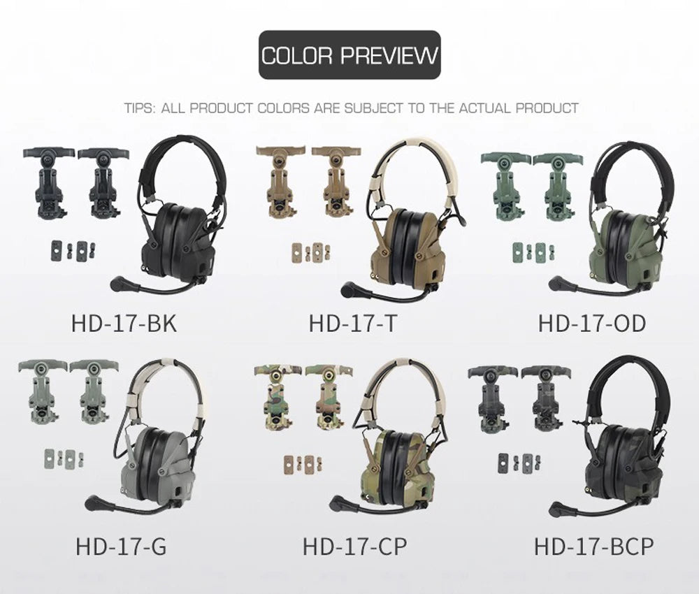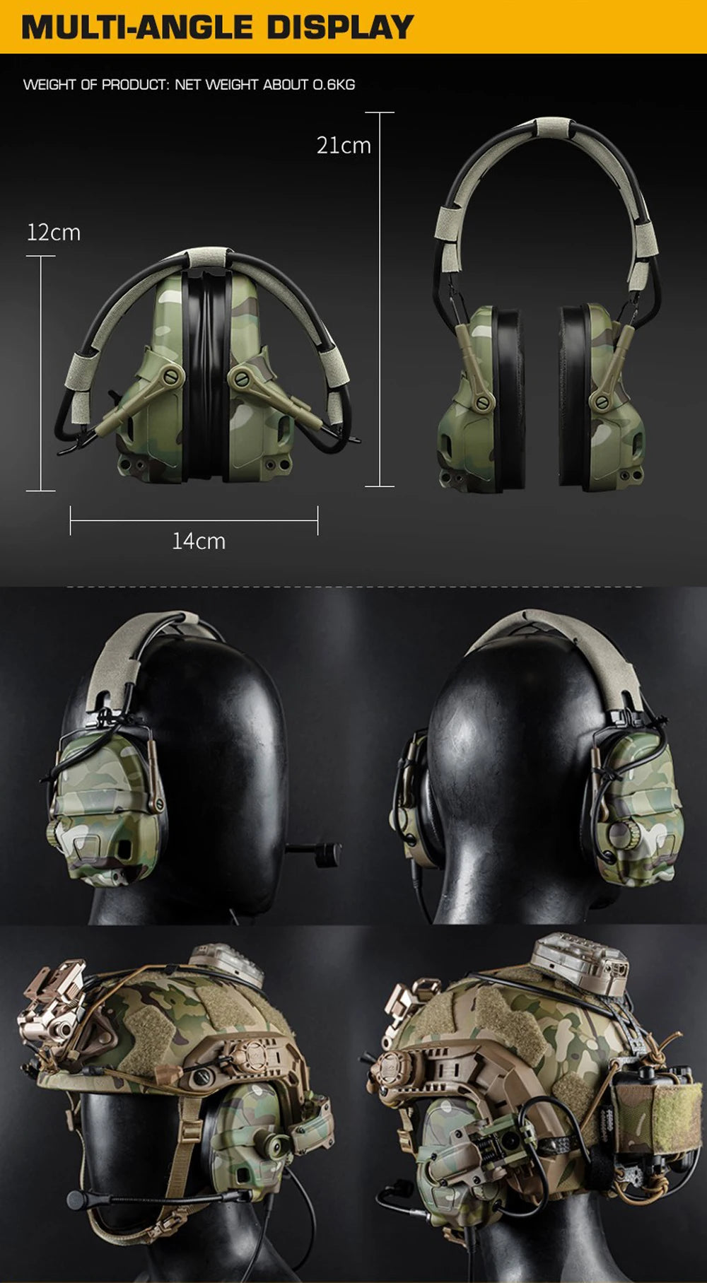 Tactical Noise Reduction Headset With Helmet Rail Mount Holder Outdoor Hunting Sport Communication Headset Shooting Airsoft Gear