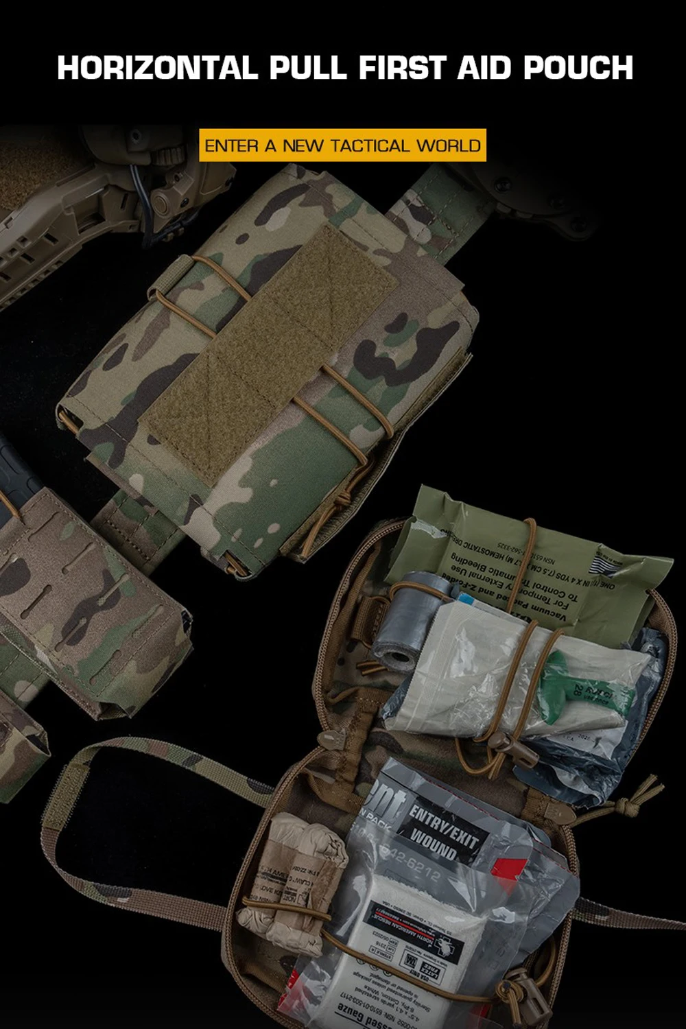 Tactical First Aid Kit MOLLE Rapid Deployment Medical Pouch Horizontal Quick Pull Hunting Camping Survival Safety Waist Belt Bag