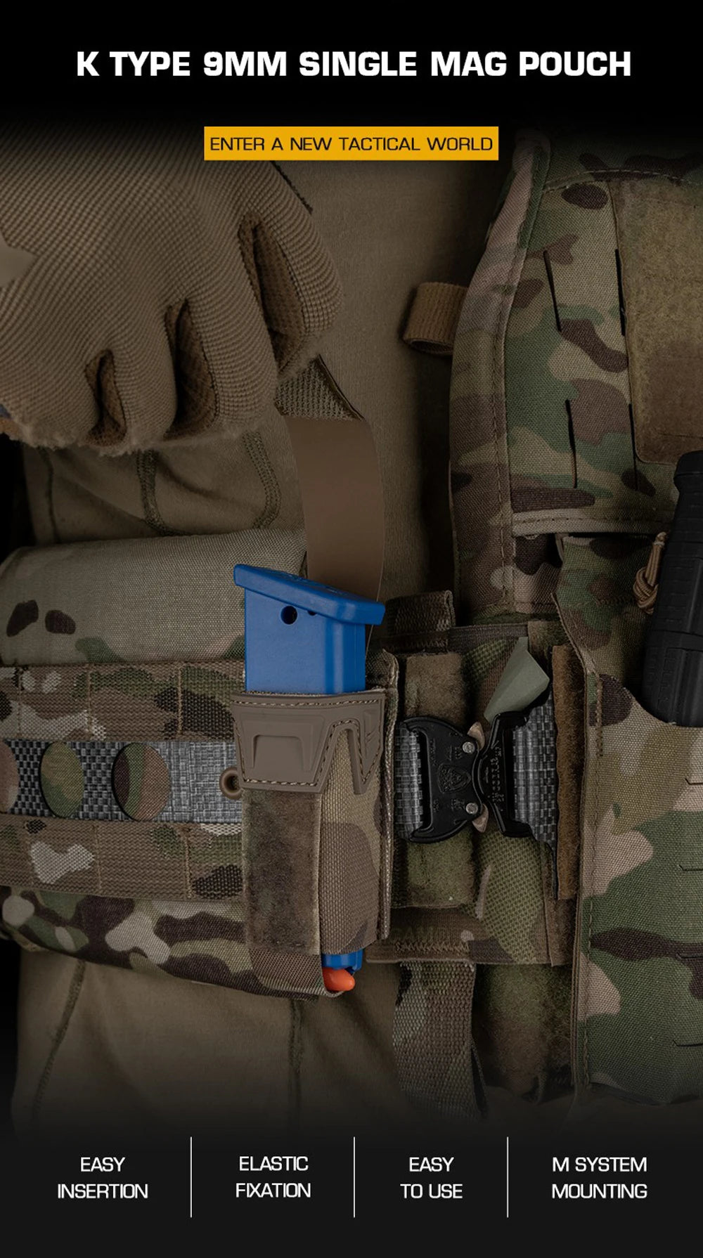 Tactical 9mm Magazine Pouch K Type MOLLE Single Hunting Pistol Mag Holder Flashlight Bag Quick Release Shooting Airsoft Gear