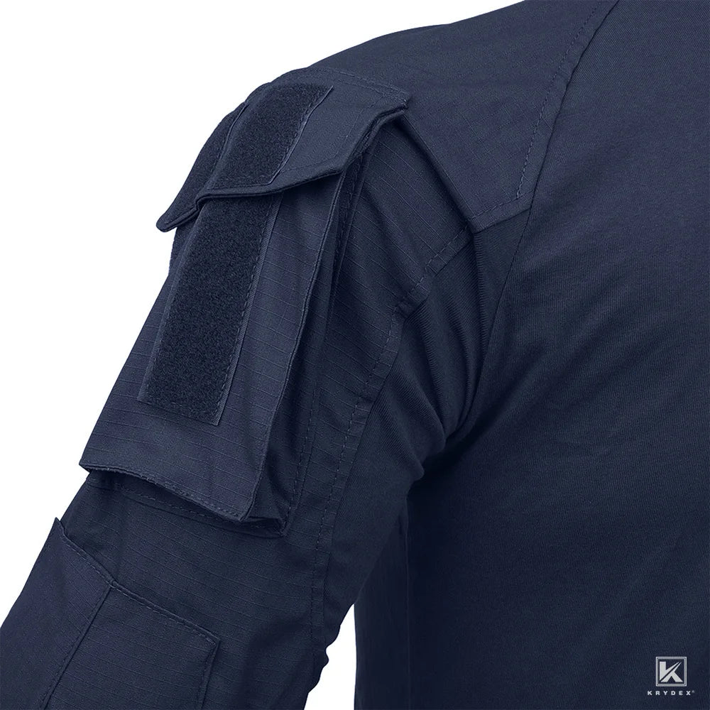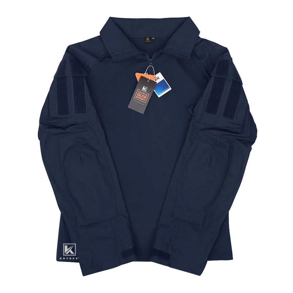 KRYDEX Tactical Combat Shirt Assault Tops with Elbow Pads Outdoor Hunting Clothing Navy Blue