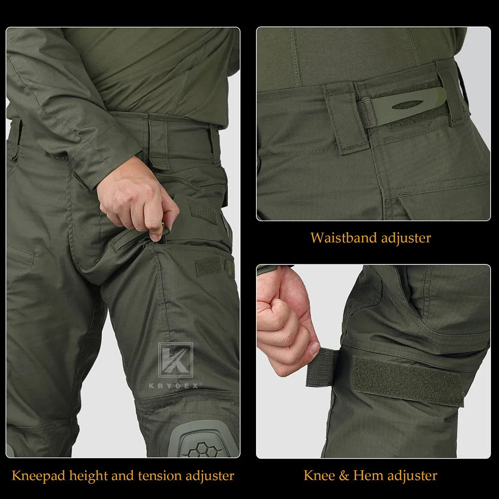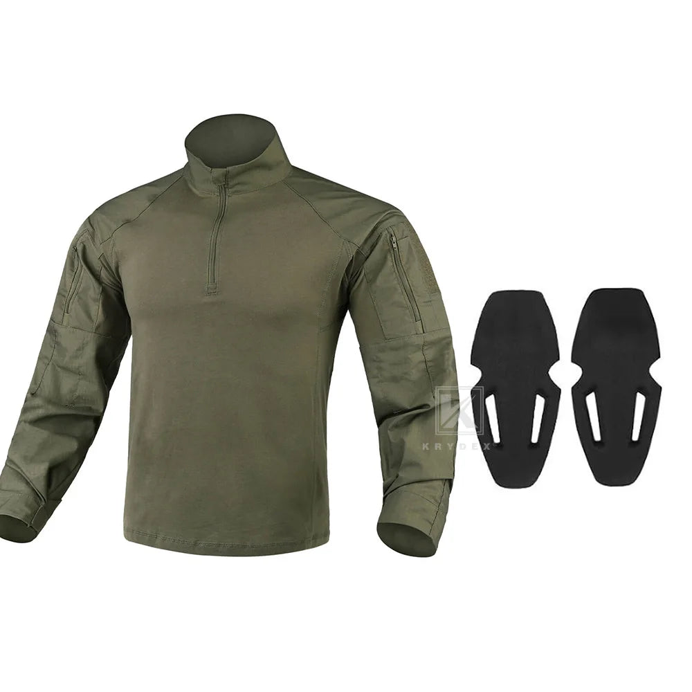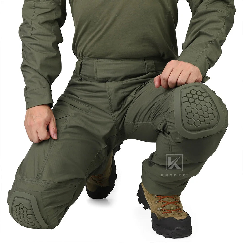 KRYDEX Tactical Combat Suit Shirt & Pants with Knee Pads Hunting Men Clothing Camouflage Uniform Set Camo Ranger Green