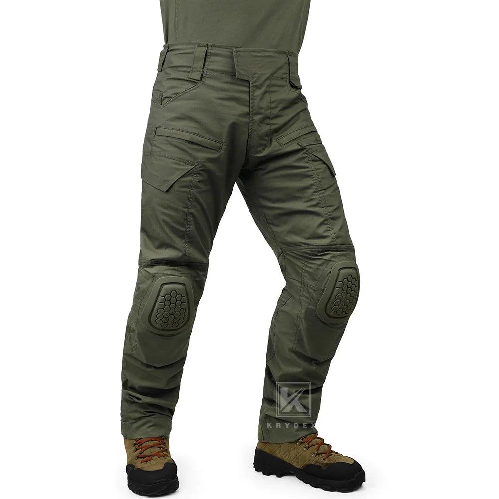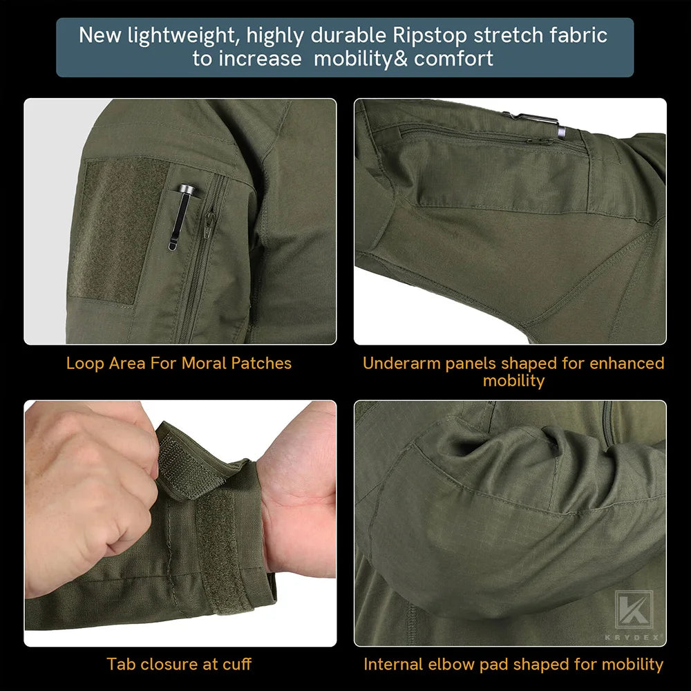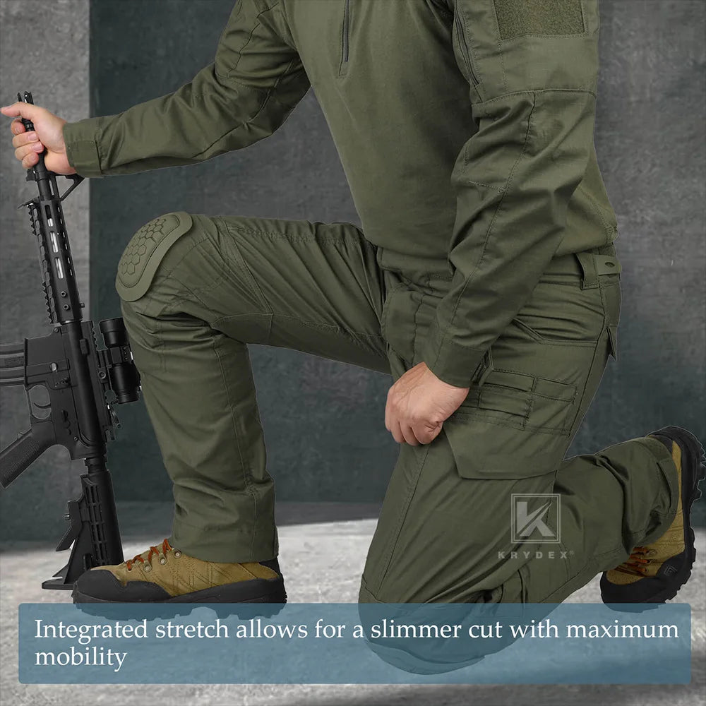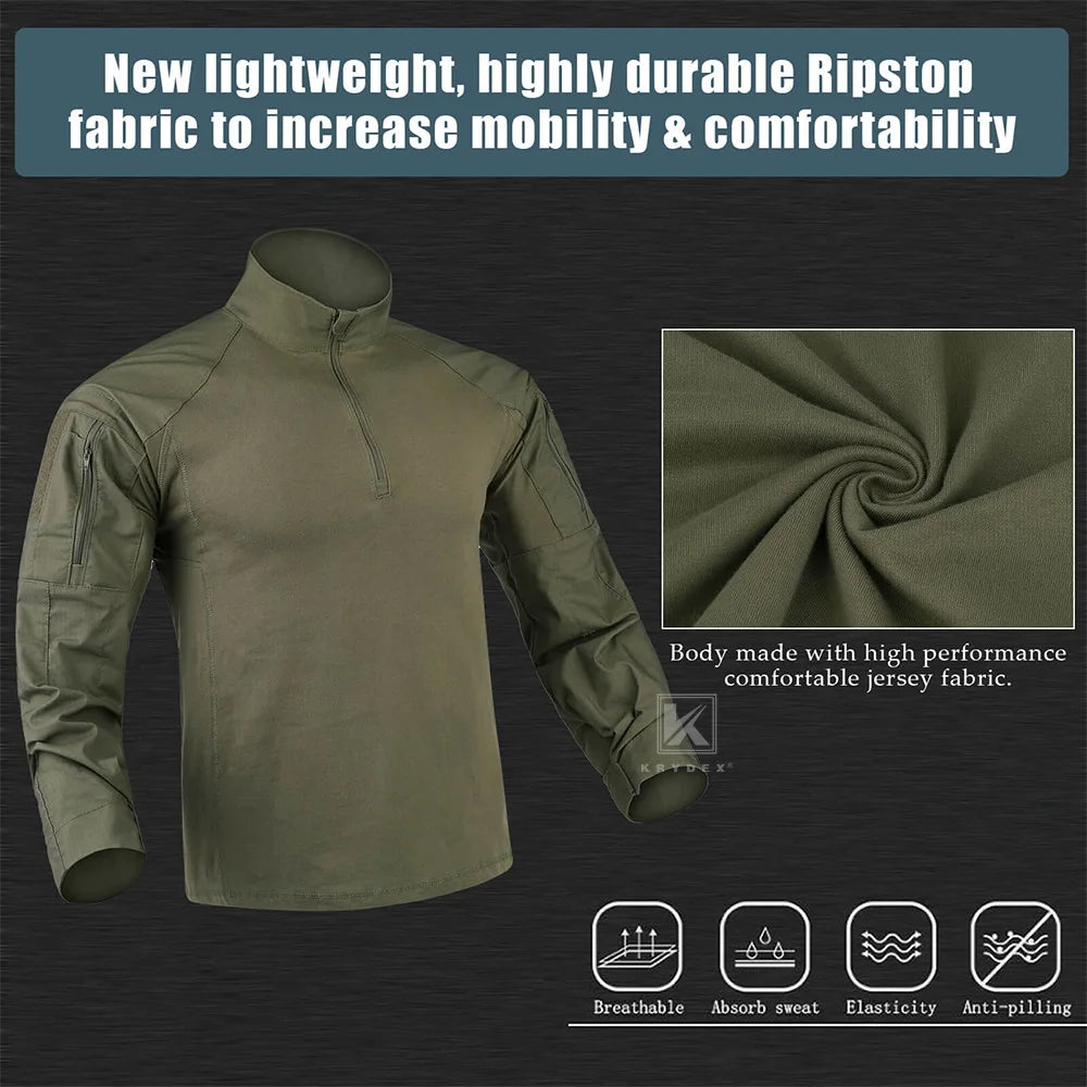 KRYDEX Tactical Combat Suit Shirt & Pants with Knee Pads Hunting Men Clothing Camouflage Uniform Set Camo Ranger Green