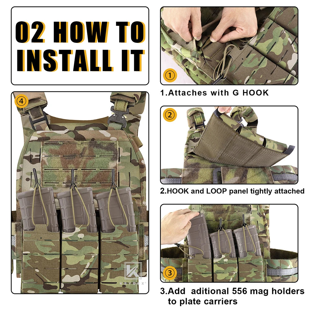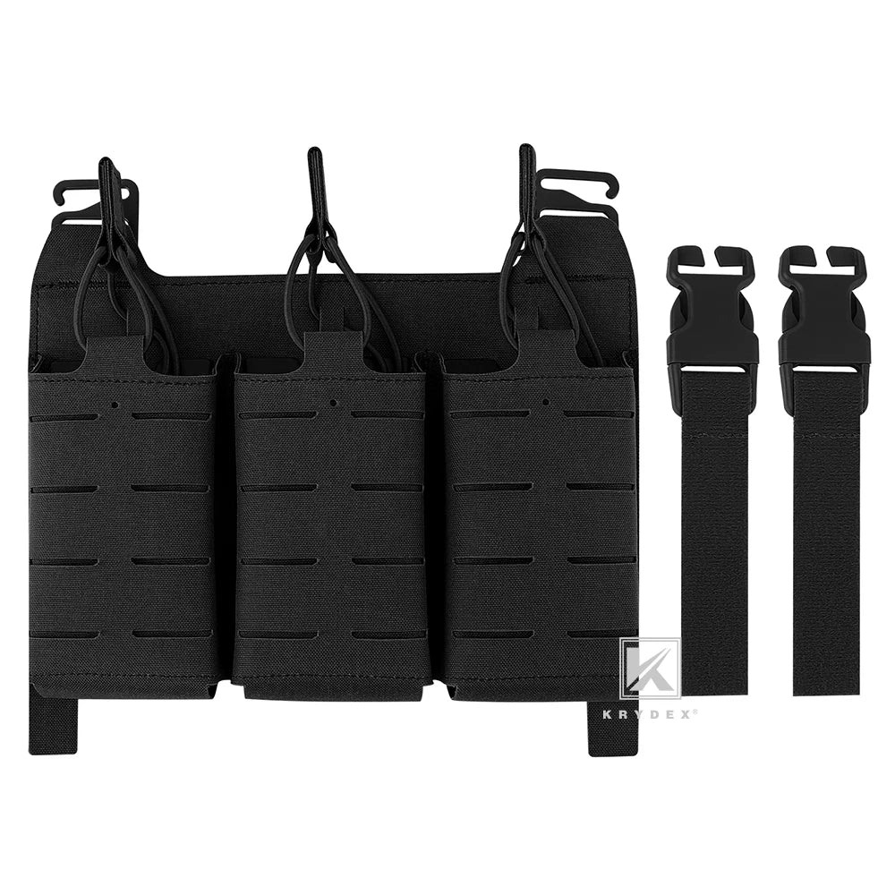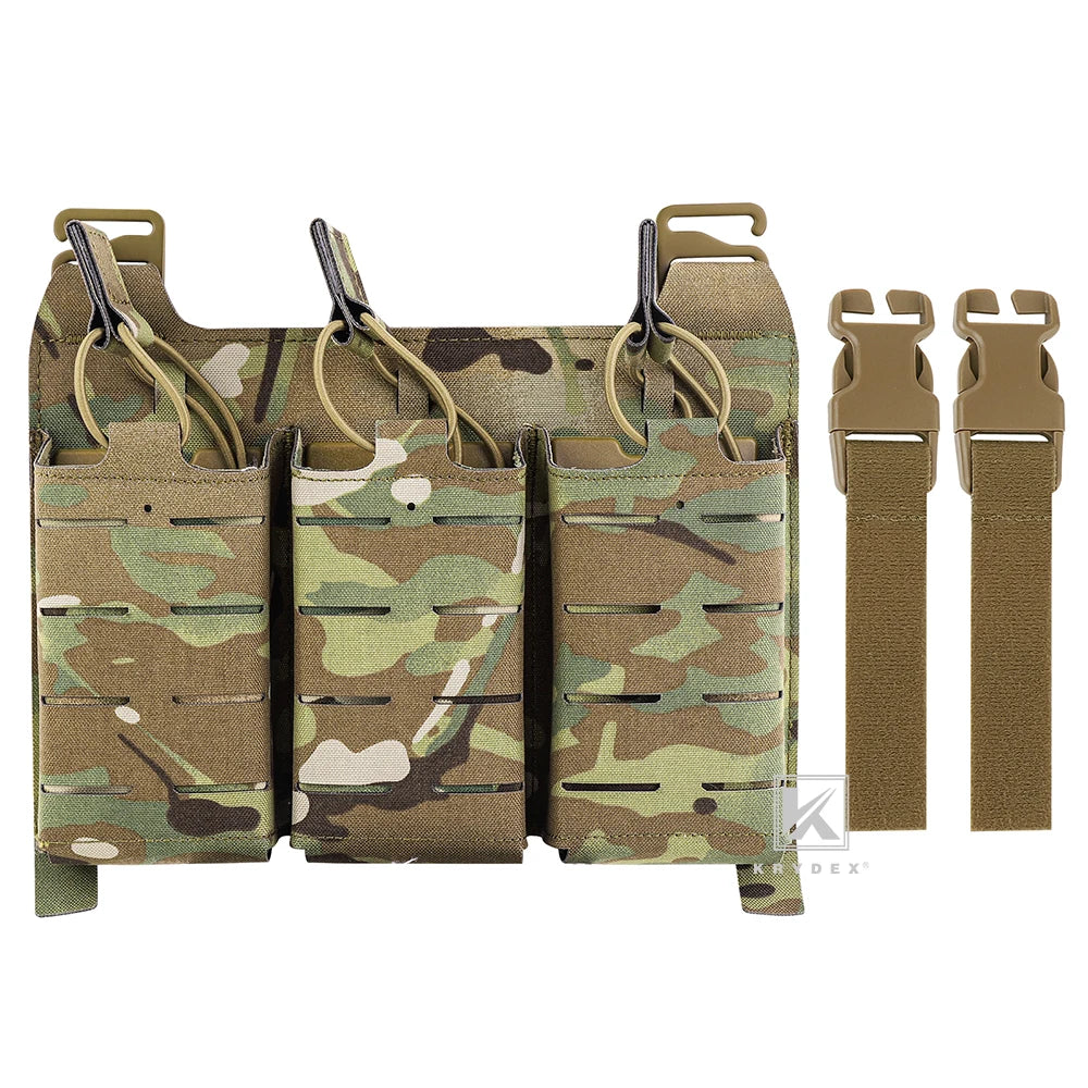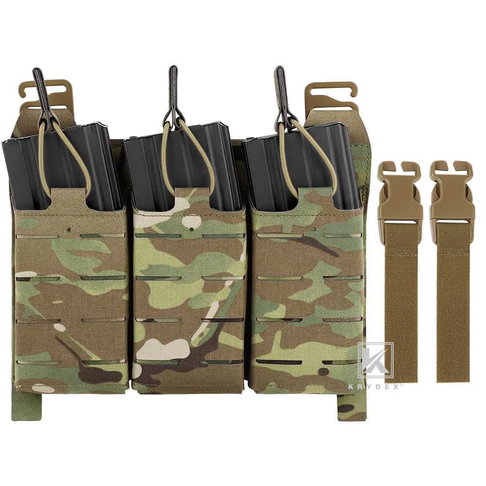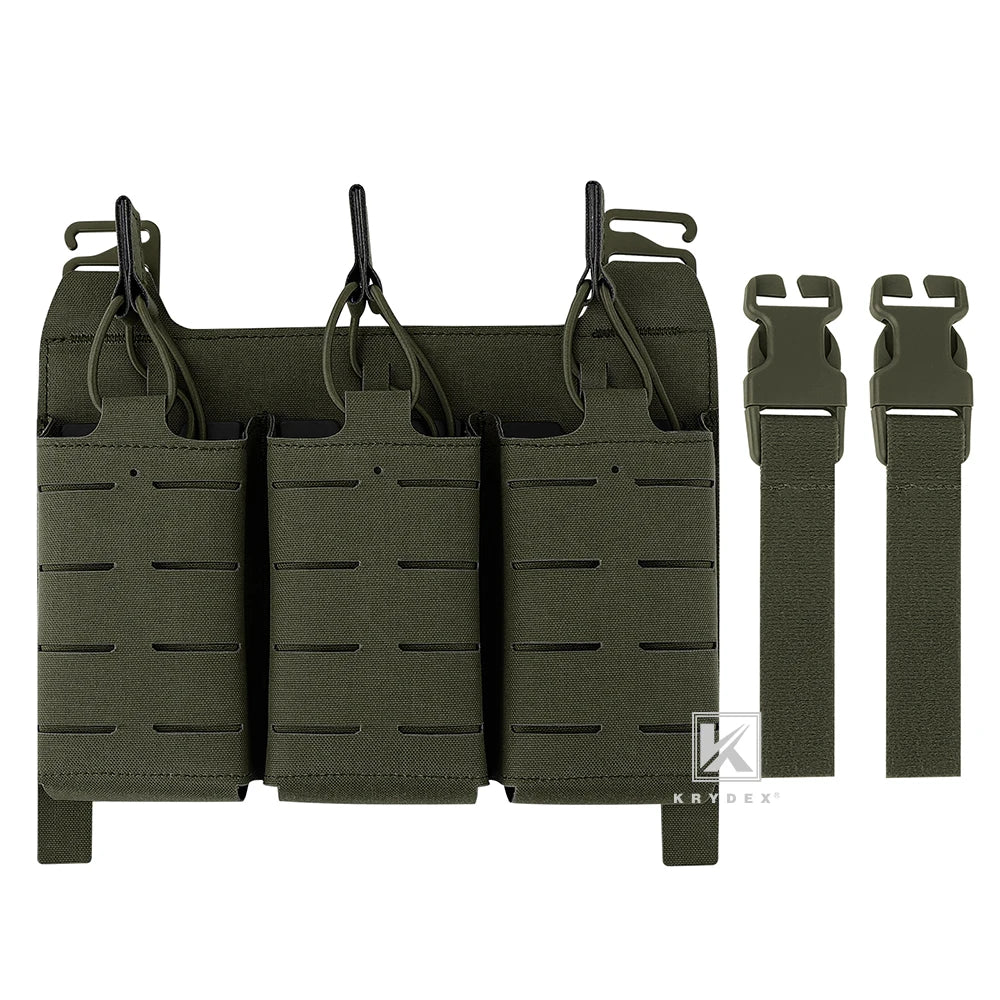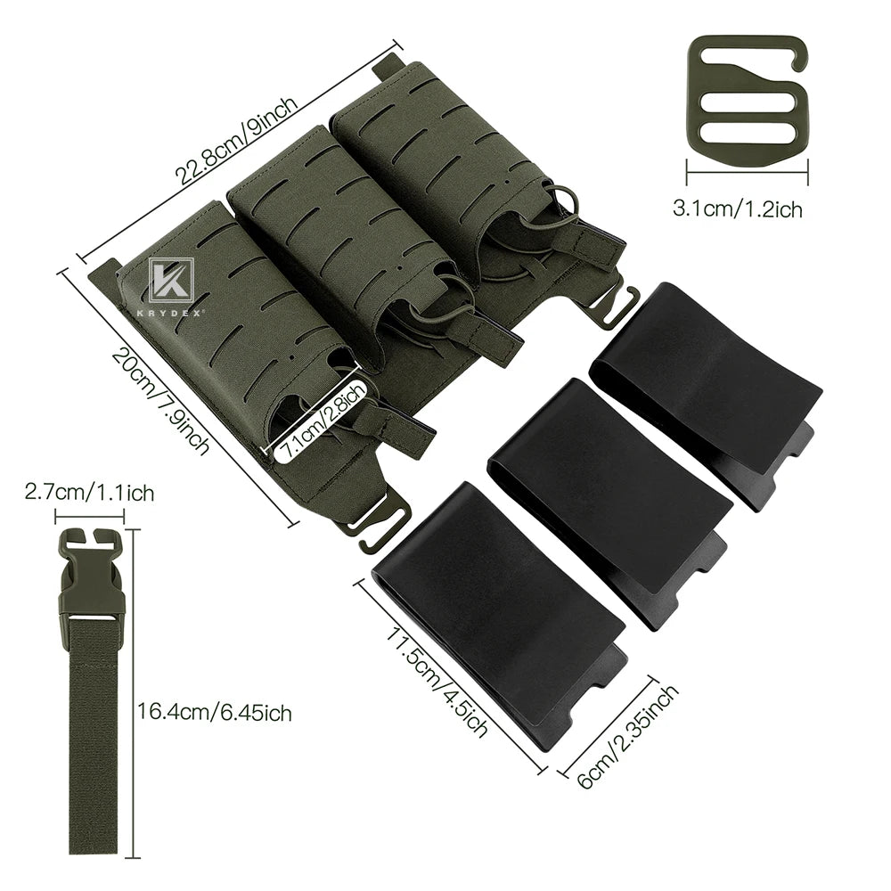 KRYDEX Tactical KTAR MOLLE Front Flap 5.56 M4 Triple Magazine Pouch Placard with G hook Buckle Mag Insert Camo Ranger Green Gear