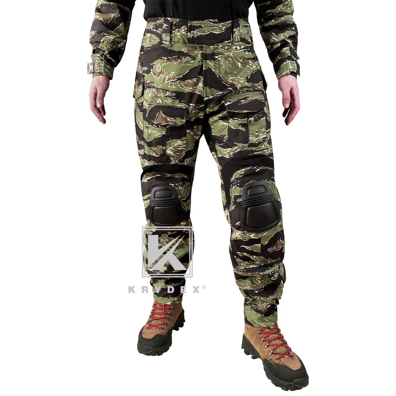 KRYDEX Camouflage Combat Uniform Clothing Hunting Hiking Tactical Shirt & Pants Suit Kit Tiger Stripe Camo