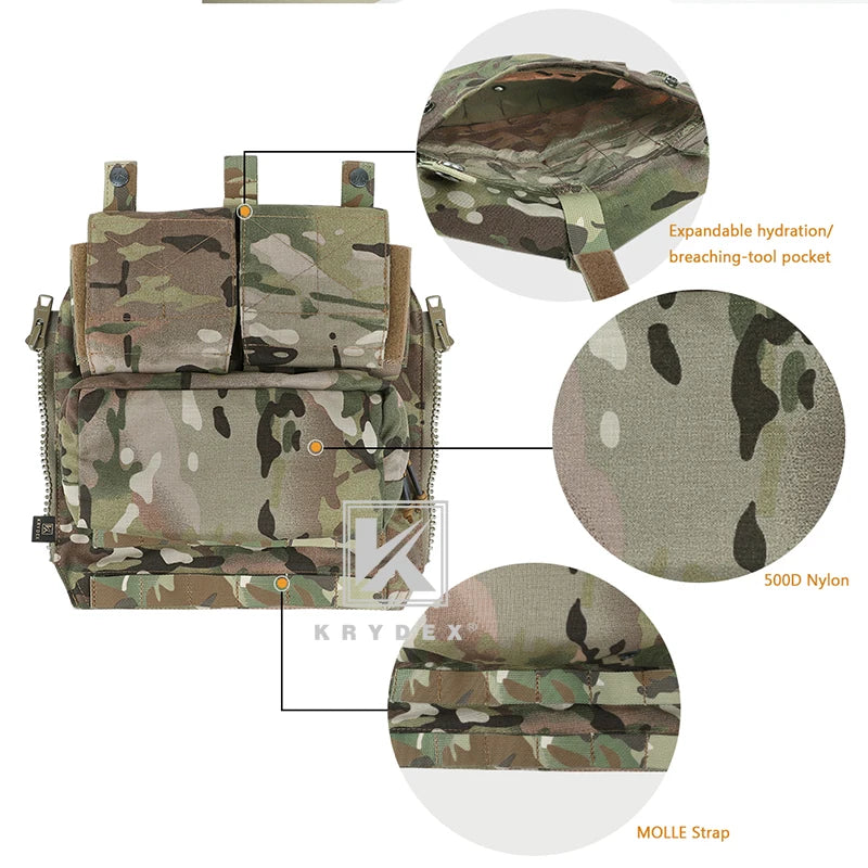 KRYDEX Tactical Pack Zip-on Panel Backpack For CPC NCPC AVS JPC2.0 Vest Airsoft Combat Gear Accessories Carrier Panel Bag