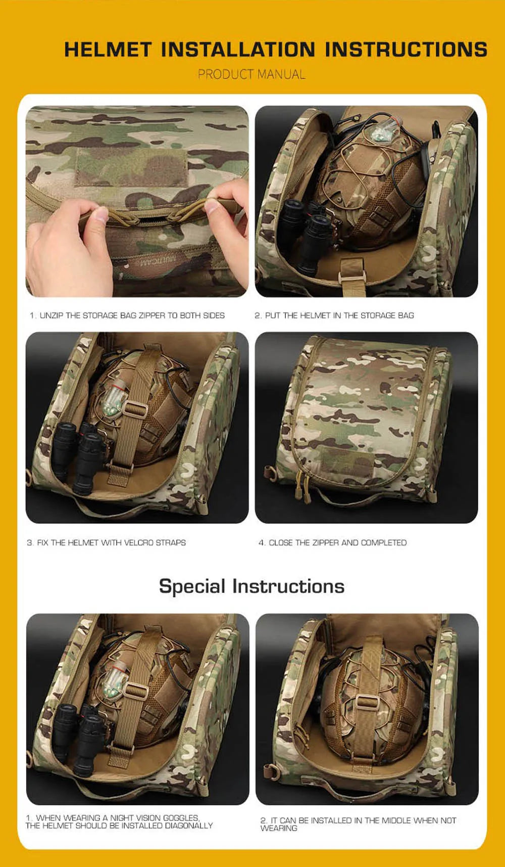 Tactical Helmet Bag Large Capacity Outdoor Hunting Airsoft FAST Helmet Storage Carrying Pouch Handheld Design Riding Helmet Gear