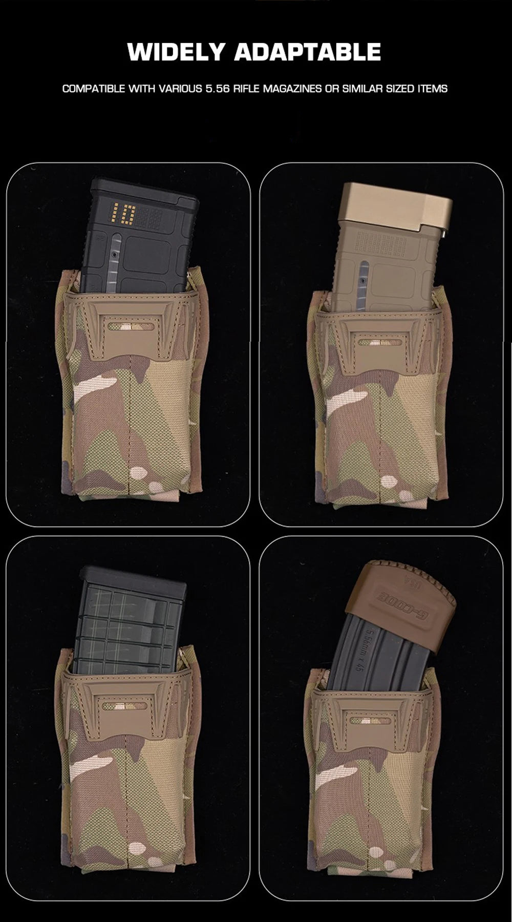 5.56 Single Multi-Caliber Mag Pouch Low Profile Quick Release Hunting Combat Airsoft Mag Pouch Portable MOLLE Tactical Belt Gear