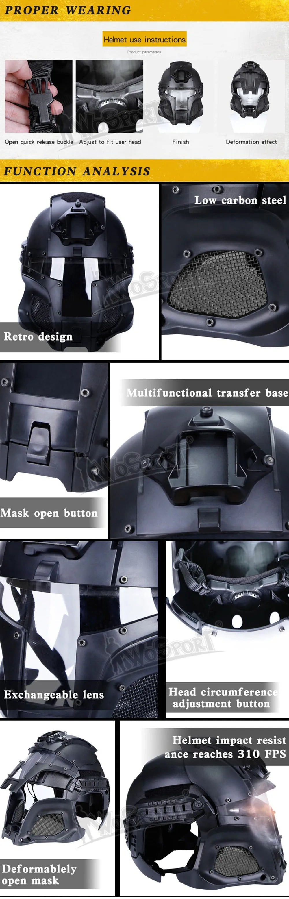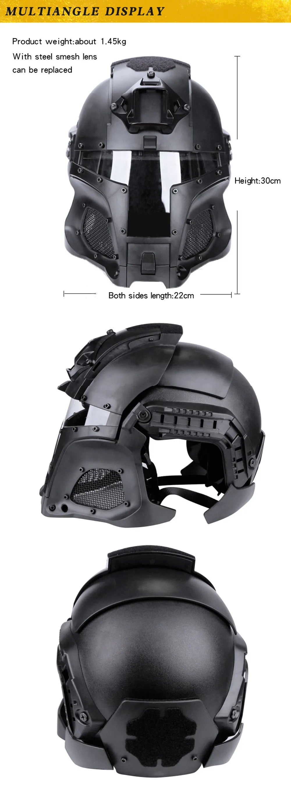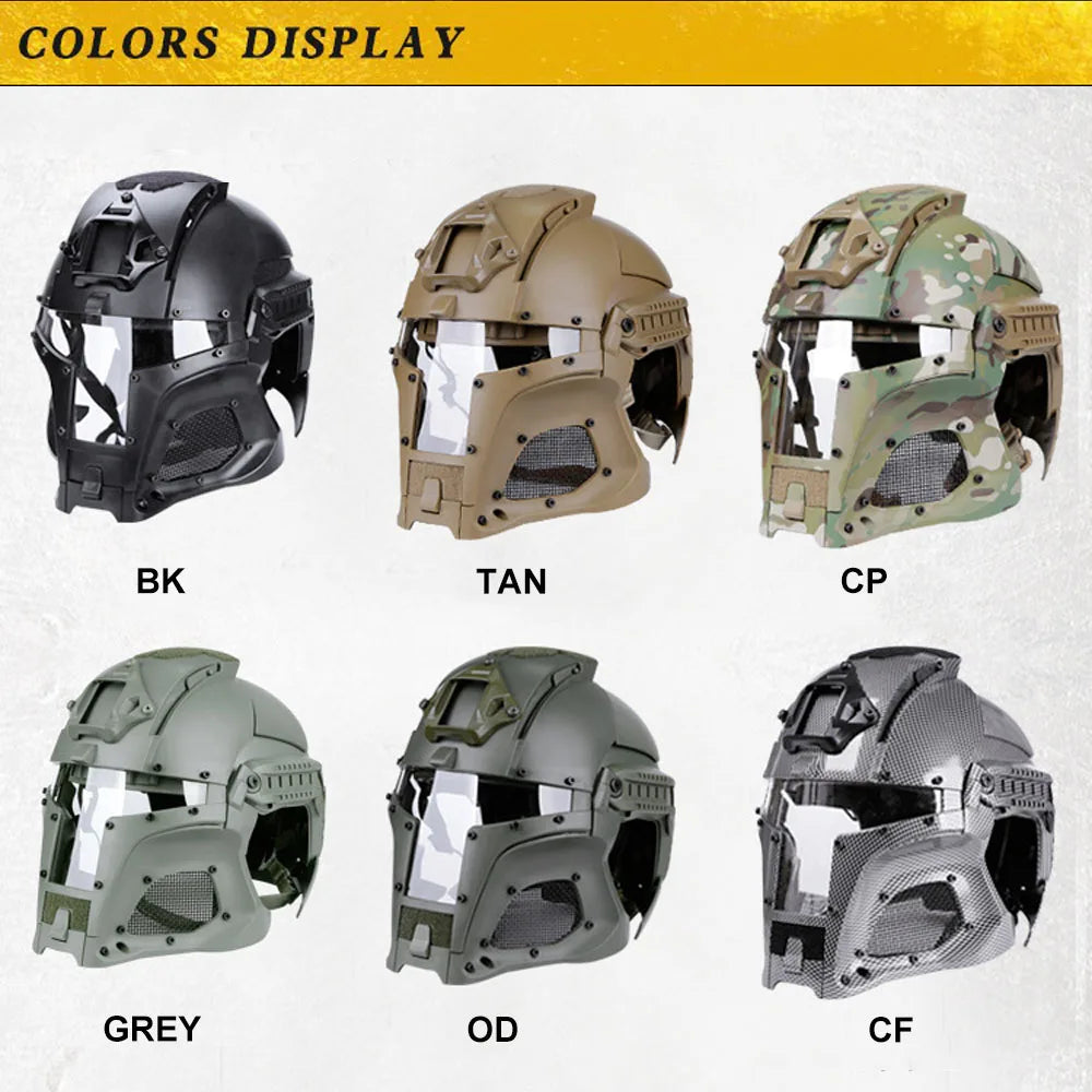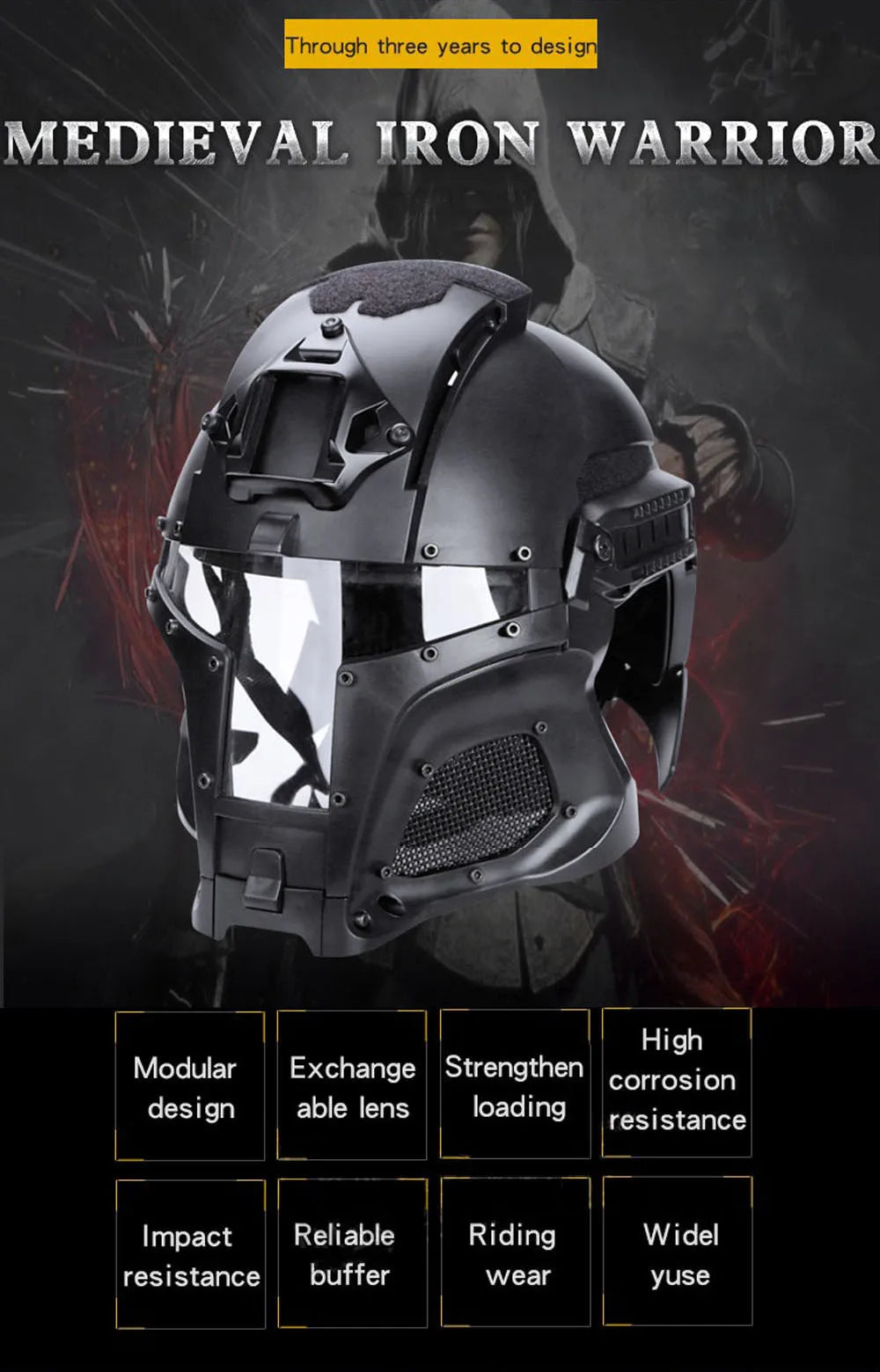 Tactical Full-covered Helmet Medieval Iron Warrior Paintball Protective Airsoft Helmet Adjustable Outdoor Sports Cycling Gear