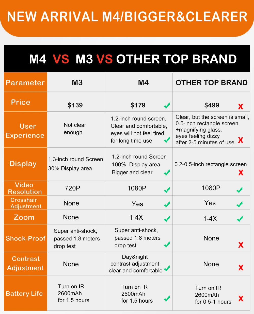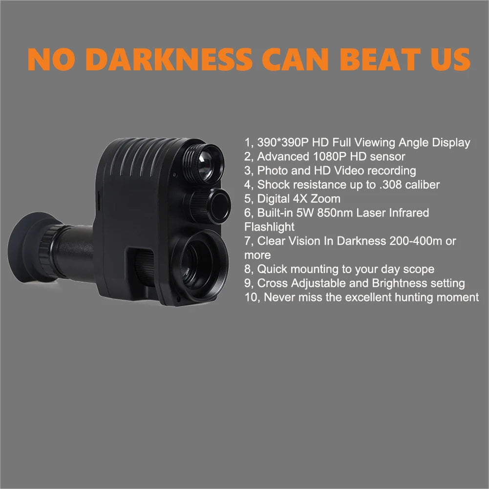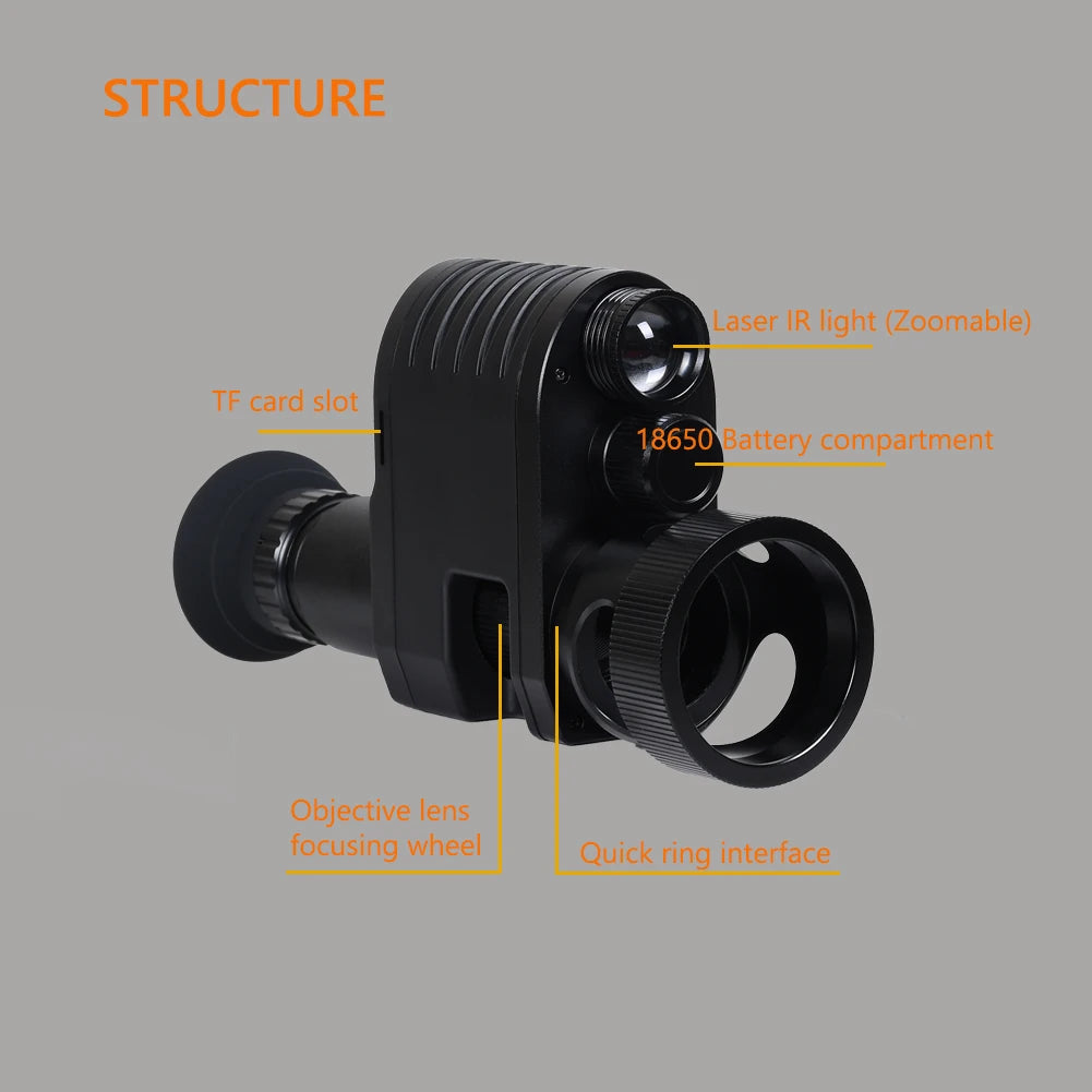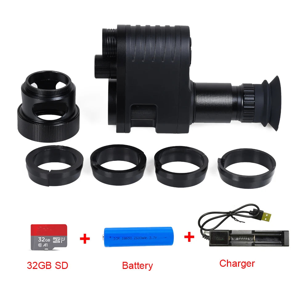 This Digital night vision scope M4 can simply attach onto the rear of rifle scope instantly converting it to night vision scope for close and long range hunting day or night.