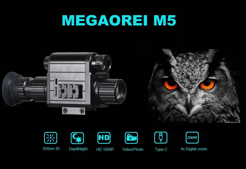 1, Megaorei M5 All IN 1 HUNTING CAMERA MONOCULAR: M5 multifunctional integrated design, It's ideal for close and long range hunting, surveillance, animal observation in daytime or in complete darkness night.