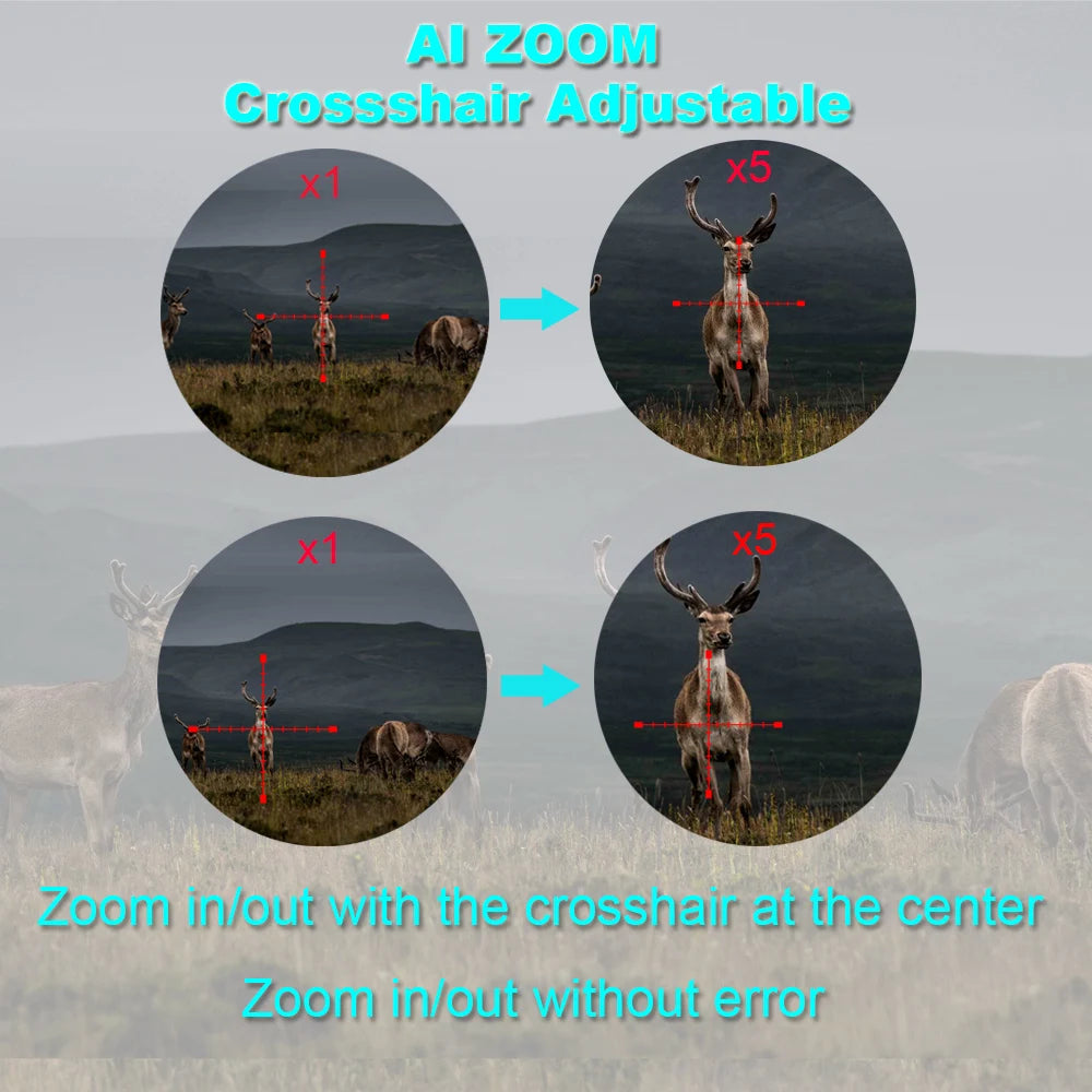 2, CLEAR VISION DAY AND NIGHT: M5 features 2MP FHD 1080P CMOS sensor, 50mm large objective lens, 4x magnification + 4x digital zoom, built-in 850nm laser IR illuminator with 3 gears IR levels adjustment enable to observe animals more than 3280ft/1000m at daytime, up to 1310 ft/400m in complete darkness, clearly at night. You can view full HD image directly on the large eyepiece.