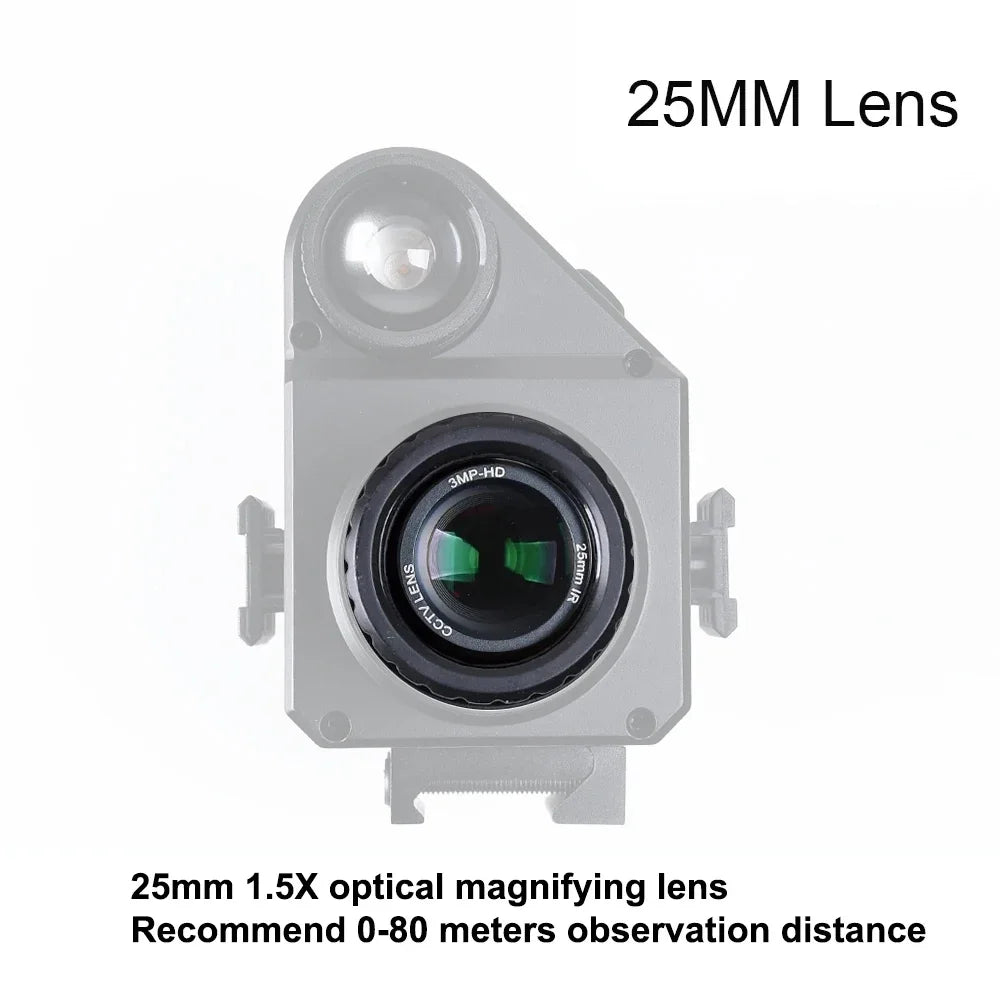 25mm 1.5x optical magnifying lens; Recommend 0-80 meters observation distance