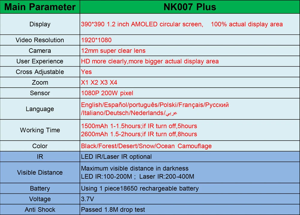 Full title: Megaorei NK007 Plus Night Vision Device 850nm Laser Infrared Rifle Scope Hunting Camera HD 1080P Video Photo Record Telescope
