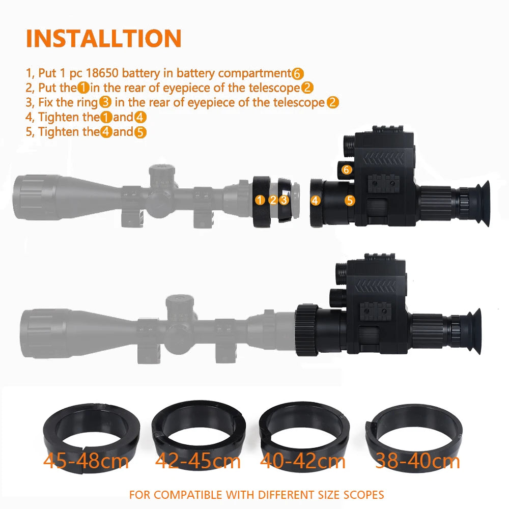 5, Easily converting your normal riflescope into night vision. (Interface size: 38-48mm).