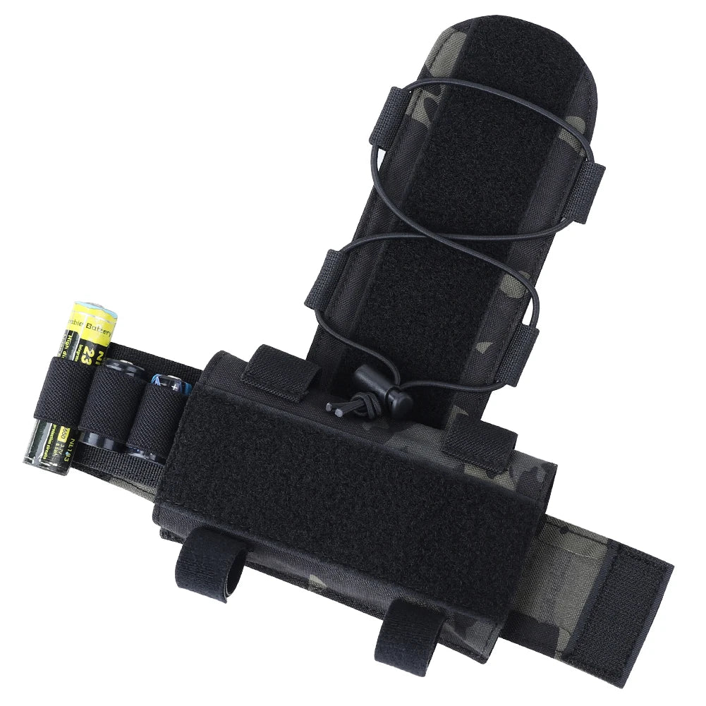 【Side Elastic Loops】Two elastic loops located on top of the pouch for instant access of the batteries or holding chemlights.
