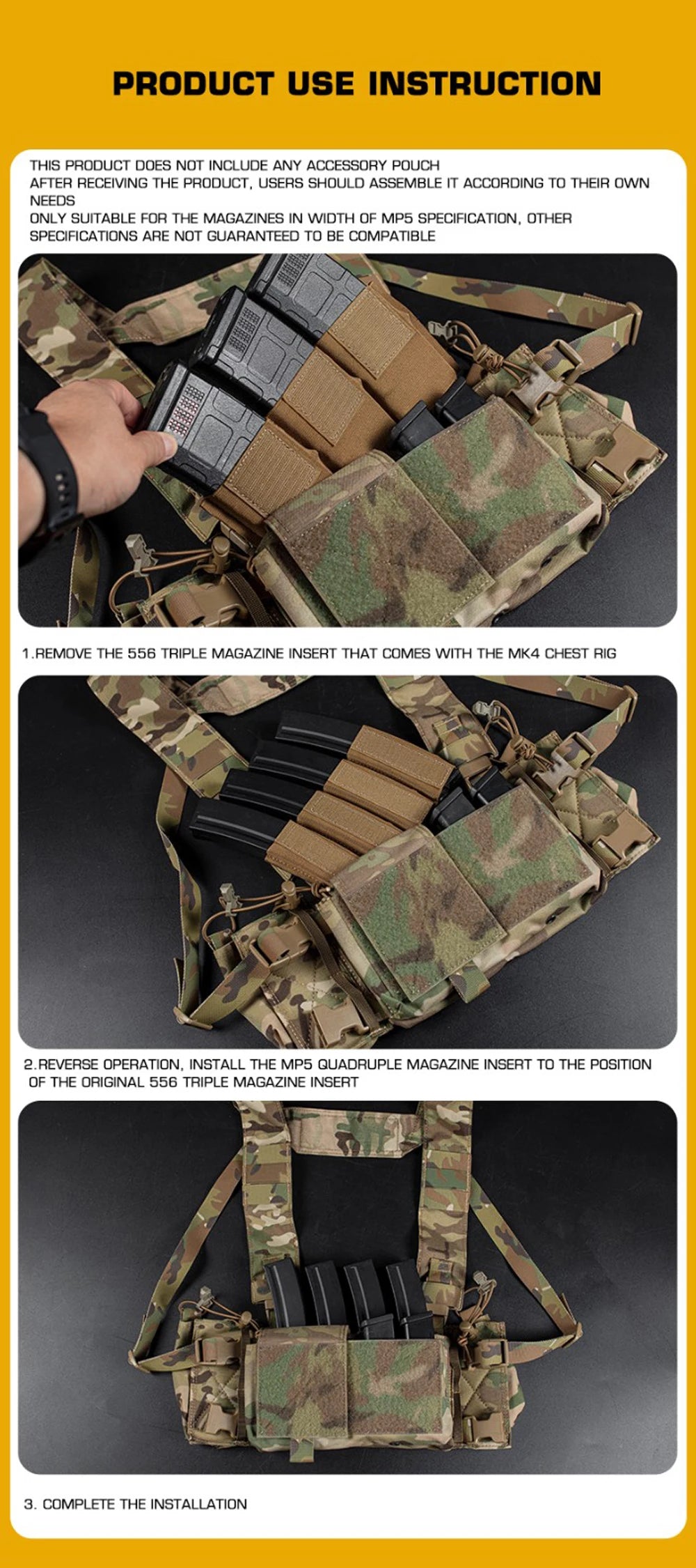 MK4 Tactical Chest Rig MP5 Magazine Insert Pouch Hunting Vest Plate Carrier Built-in Elastic Magazine Holder Airsoft Equipment