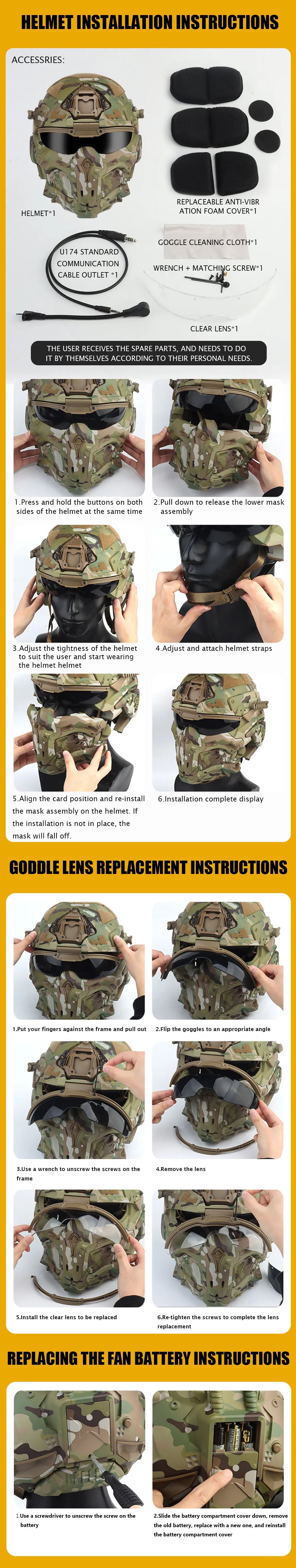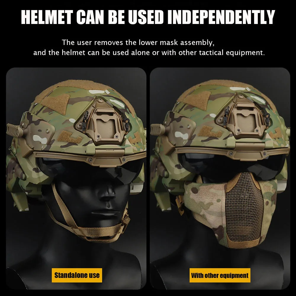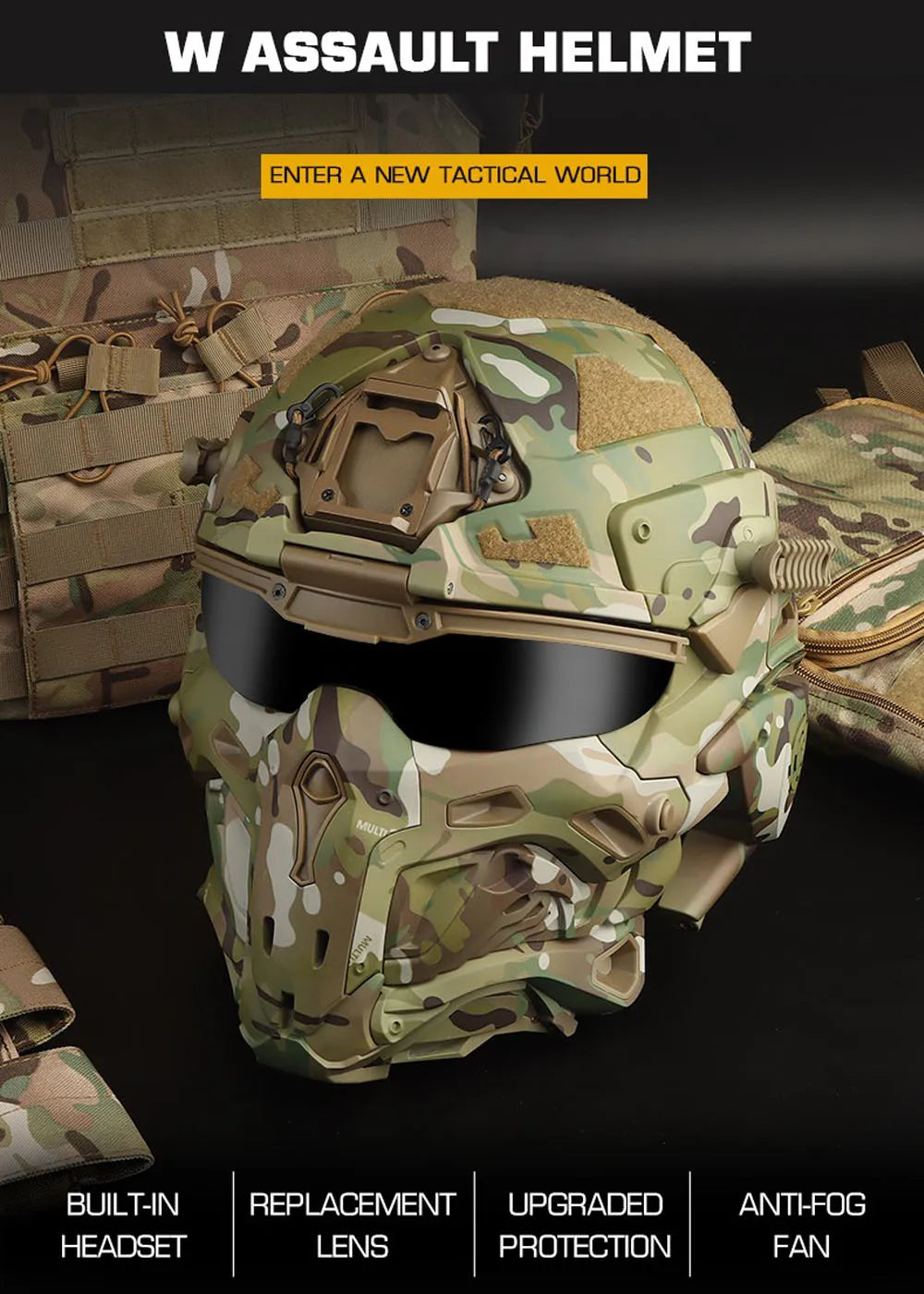 W-Ronin Assault Tactical Helmet and Tactical Mask Modular Design Built-in Headset Anti-Fog Fan Helmet Airsoft Hunting Equipment
