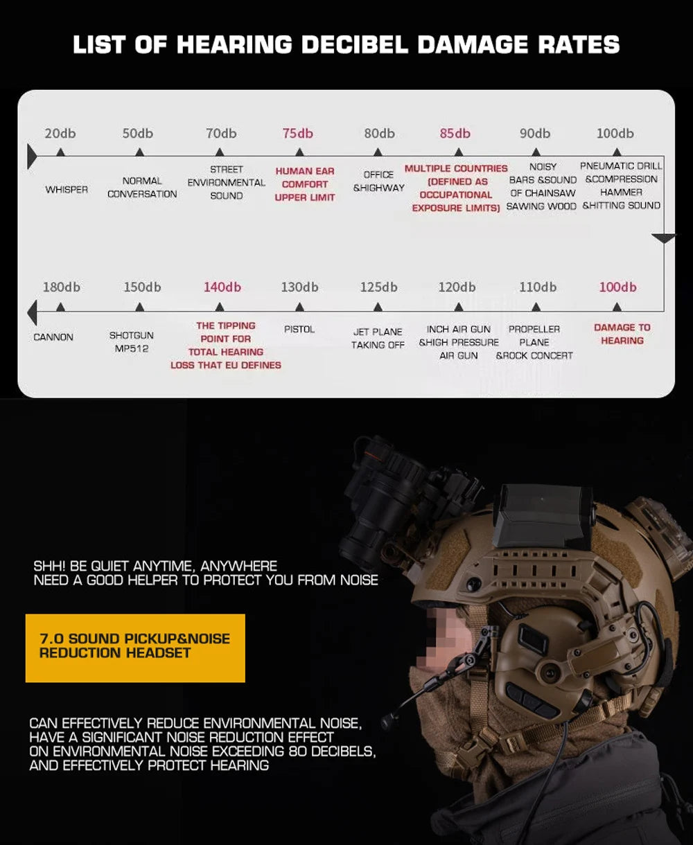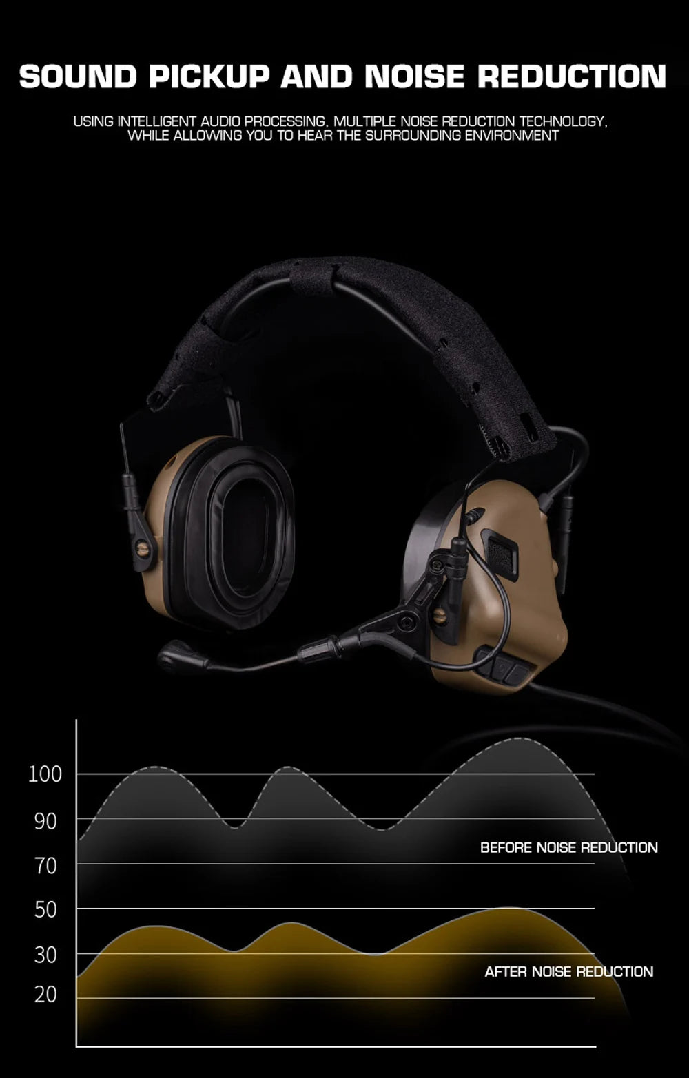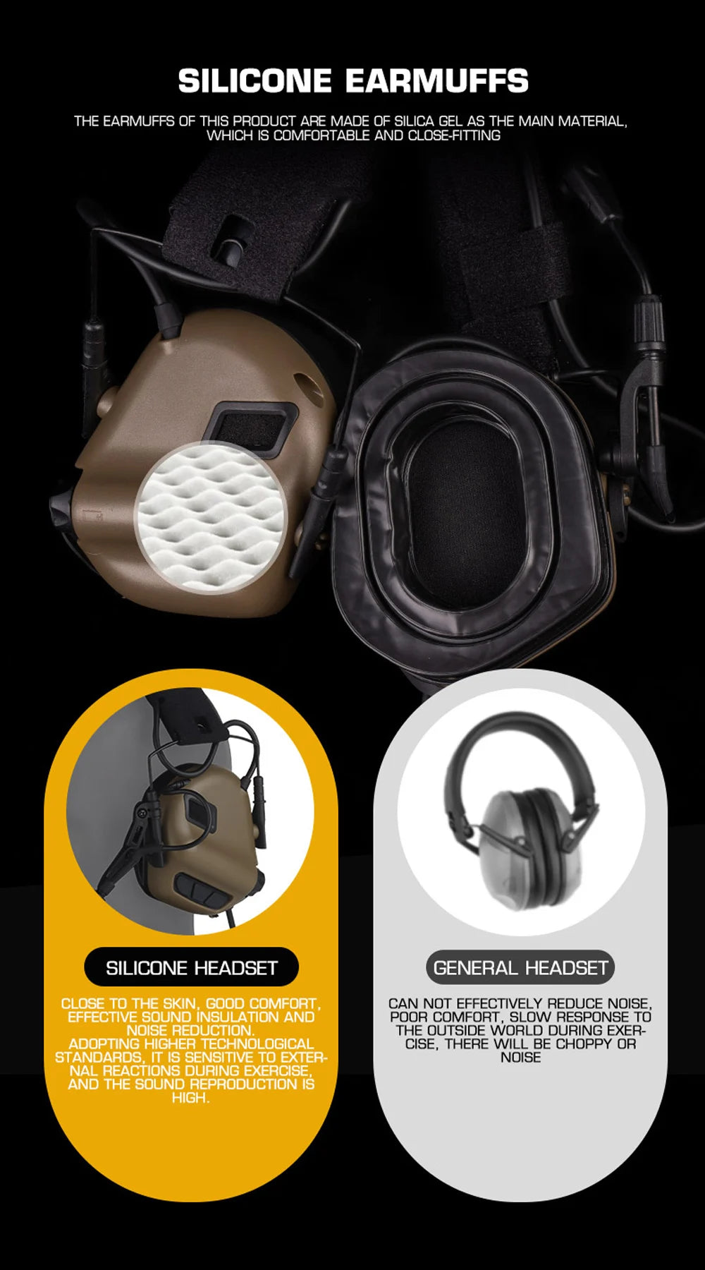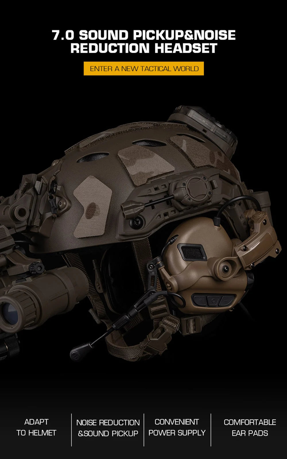 7.0 Sound Pickup Noise Reduction Headset Upgrade Processor Outdoor Hunting Combat Shooting Airsoft Headphone Fit Tactical Helmet