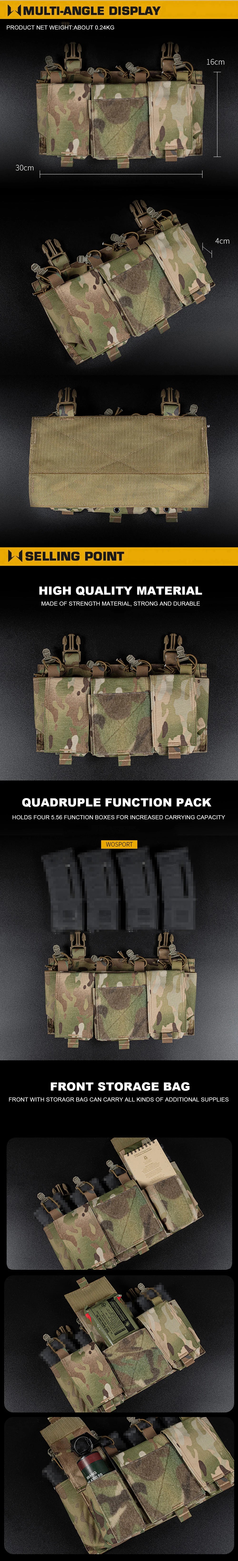 Tactical Quadruple 5.56 Magazine Pouch 25mm Buckle Airsoft Militar Hunting Vest Quick Panel for M4 M16 AR-15 Mag Storage Bag