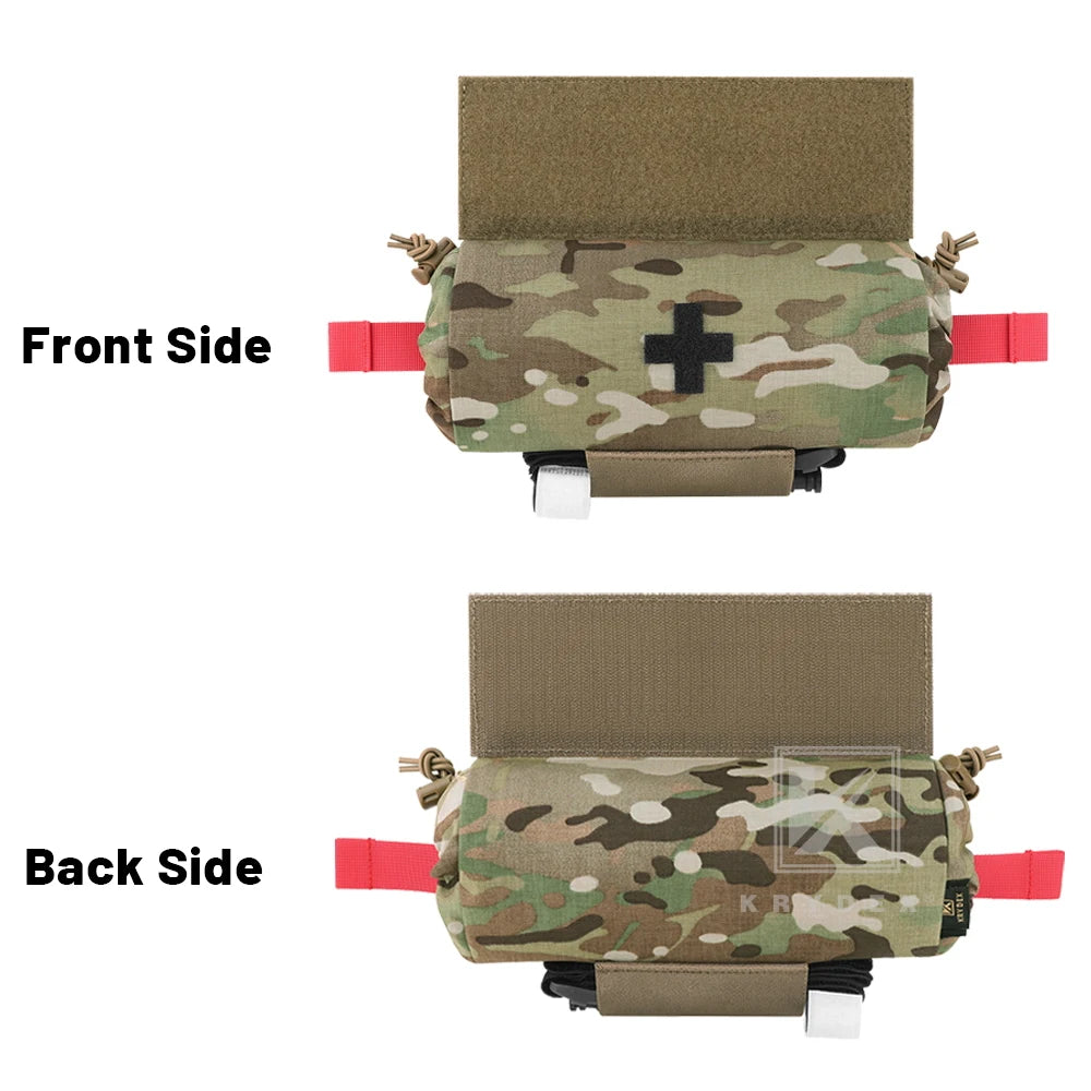 1. Made with 500D Cordura Nylon for MC and Superior 500D Nylon for Solid, Waterproof Finishing, Reliable quality. 2. Large Capacity - Pouch size 11" x 6" with bottom tourniquet holder, Designed to hold various daily emergency first aid kits , Such as Compression Bandage, Combat Gauze, Tourniquet, Compact chest seals, Trauma Shears and etc... 3. Compatible with hook & loop plateform of vest or chest rig. 4. Adjustable deployment tension on both sides. Quick draw insert pouch design.
