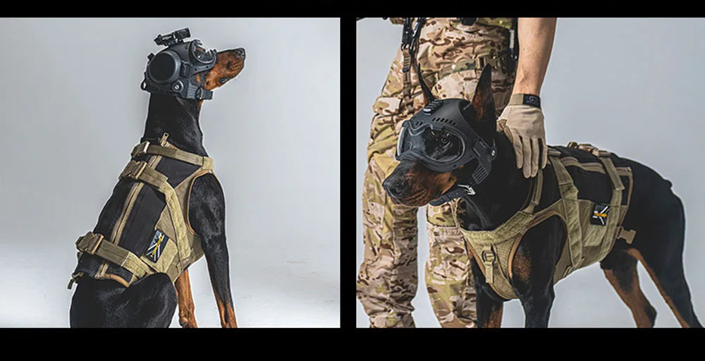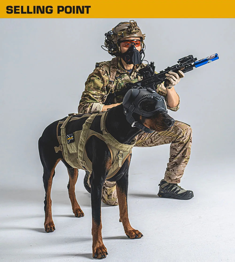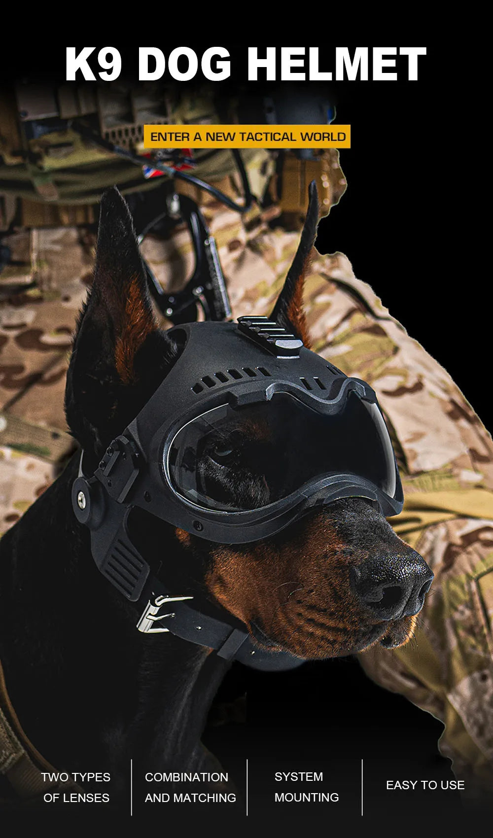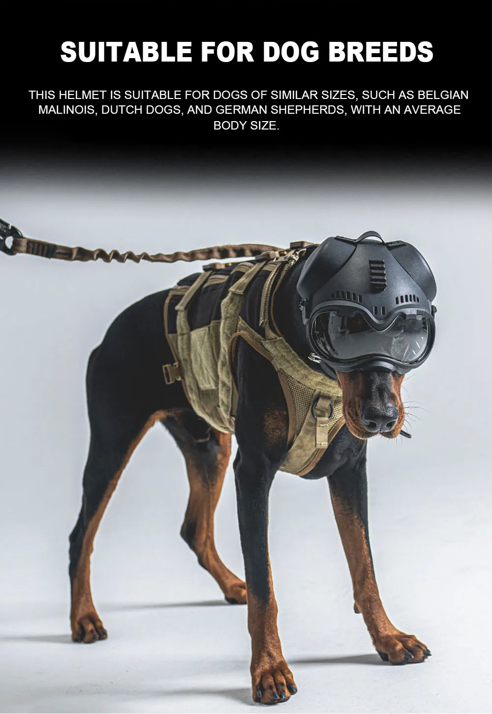 Tactical K9 Dog Helmet With Mounting Guide Rail Goggles Outdoor Hunting Combat Training Protection Helmet Police Dog Pet Gear