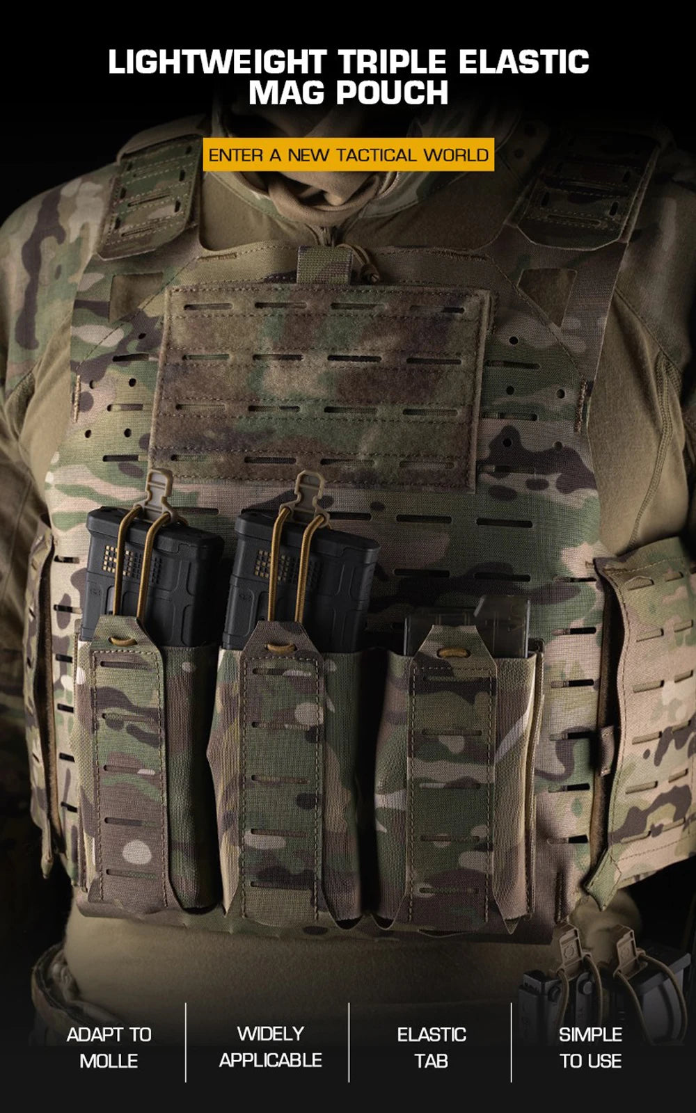 Tactical 5.56/7.62 Magazine Pouch Elastic Triple MOLLE Hunting Vest Plate Carrier Front Flap AR M4 Mag Bag Shooting Airsoft Gear