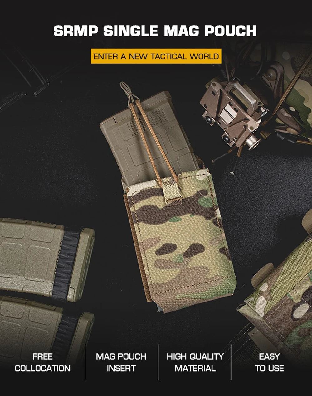 SRMP Tactical Magazine Pouch Single Universal 5.56 7.62 Hunting Shooting Airsoft Mag Holder Bag Quick Release MOLLE Belt Gear