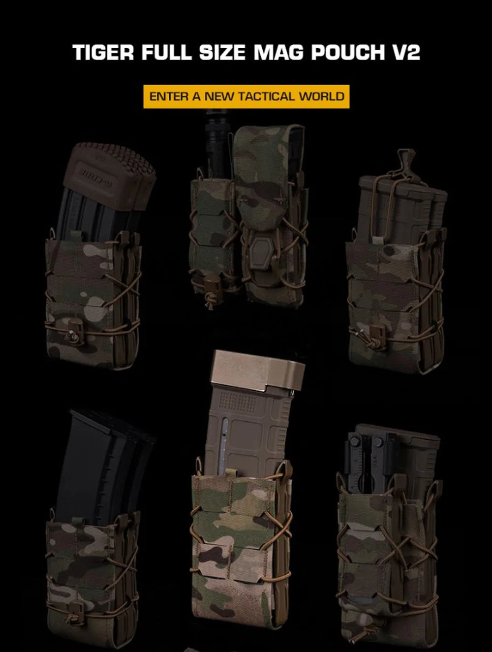 Tactical Mag Bag V2 Tiger Full Size Outdoor Hunting Combat Airsoft 556 762 Magazine Pouch With Flap Quick Pull MOLLE Belt Gear
